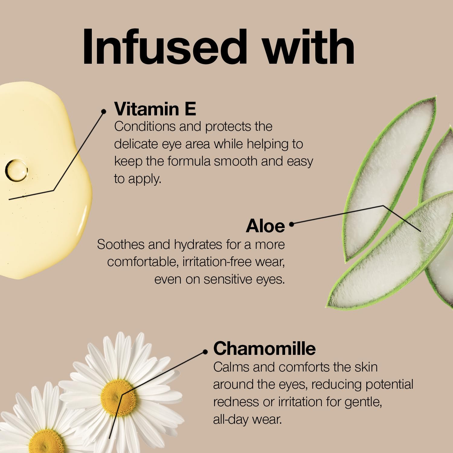 - BOTANICAL AND VITAMIN INFUSED COSMETICS: Infused with nourishing skincare ingredients like aloe, camellia, safflower, ginkgo biloba, ginseng and chamomile that helps to moisturize skin