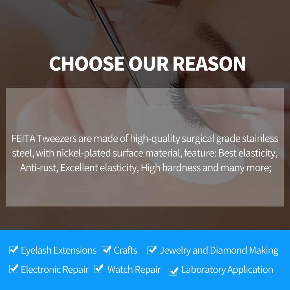 - ⦠COMFORTABLE HAND FEELING - FEITA Professional tweezers can adapt to a long-term work with the appearance of smooth lines and fine processing.