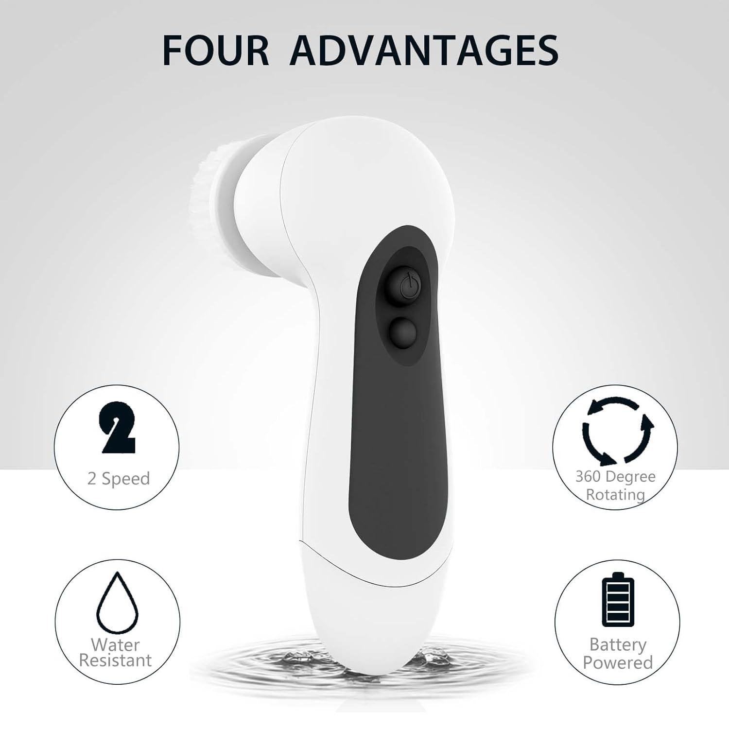 Waterproof Facial Cleansing Spin Brush Set with 5 Exfoliating Brush Heads - Electric Face Scrubber Cleanser Brush by CLSEVXY - Face Brush for Gentle Exfoliation and Deep Scrubbing