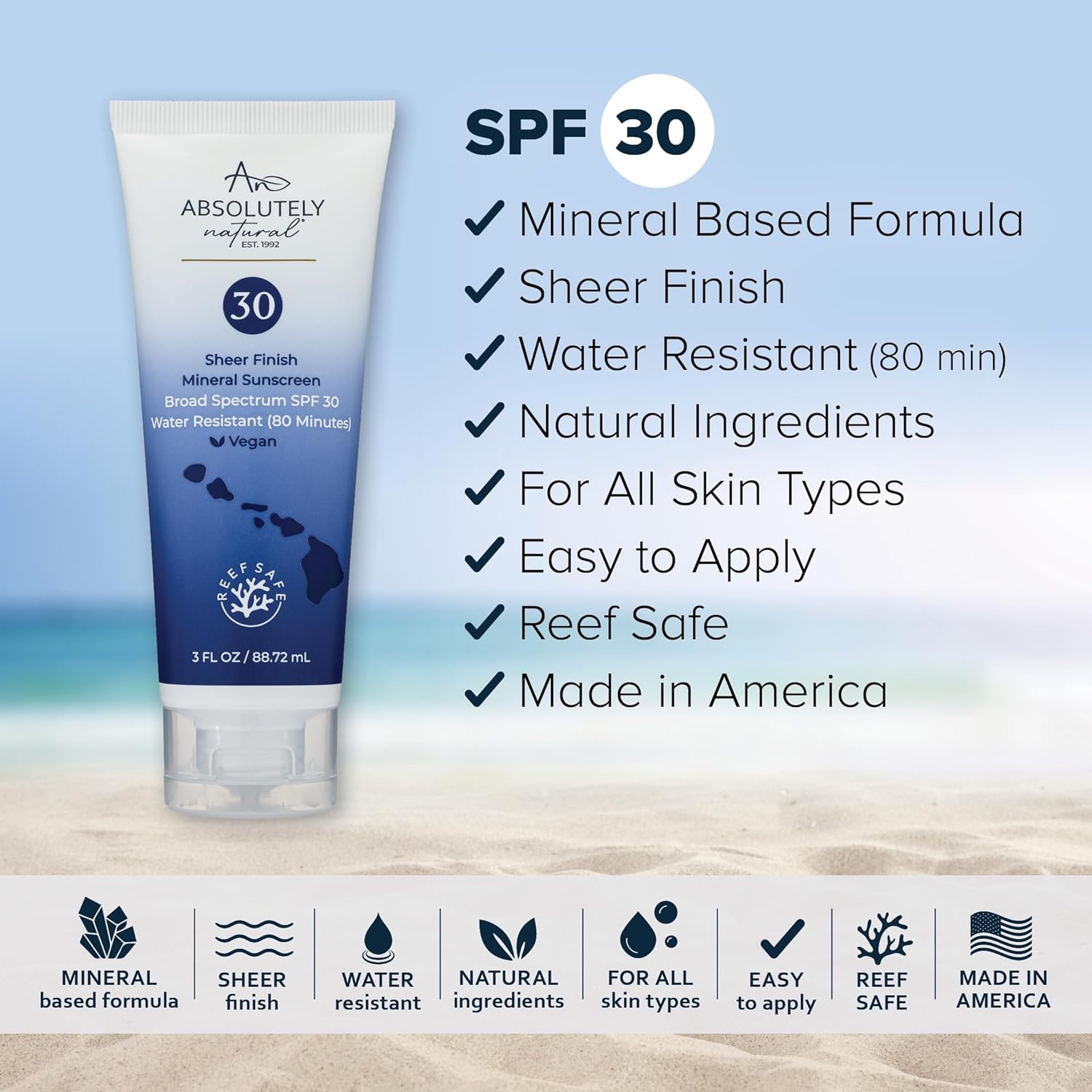 - ADVANCED SUN PROTECTANT: Experience superior sun protection with Sheer SPF 30 by Absolutely Natural, guarding your skin against harmful UV rays. This advanced formula not only shields but also maintains the softness and radiance of your skin, ensuring a comprehensive and luxurious sun care experience.
