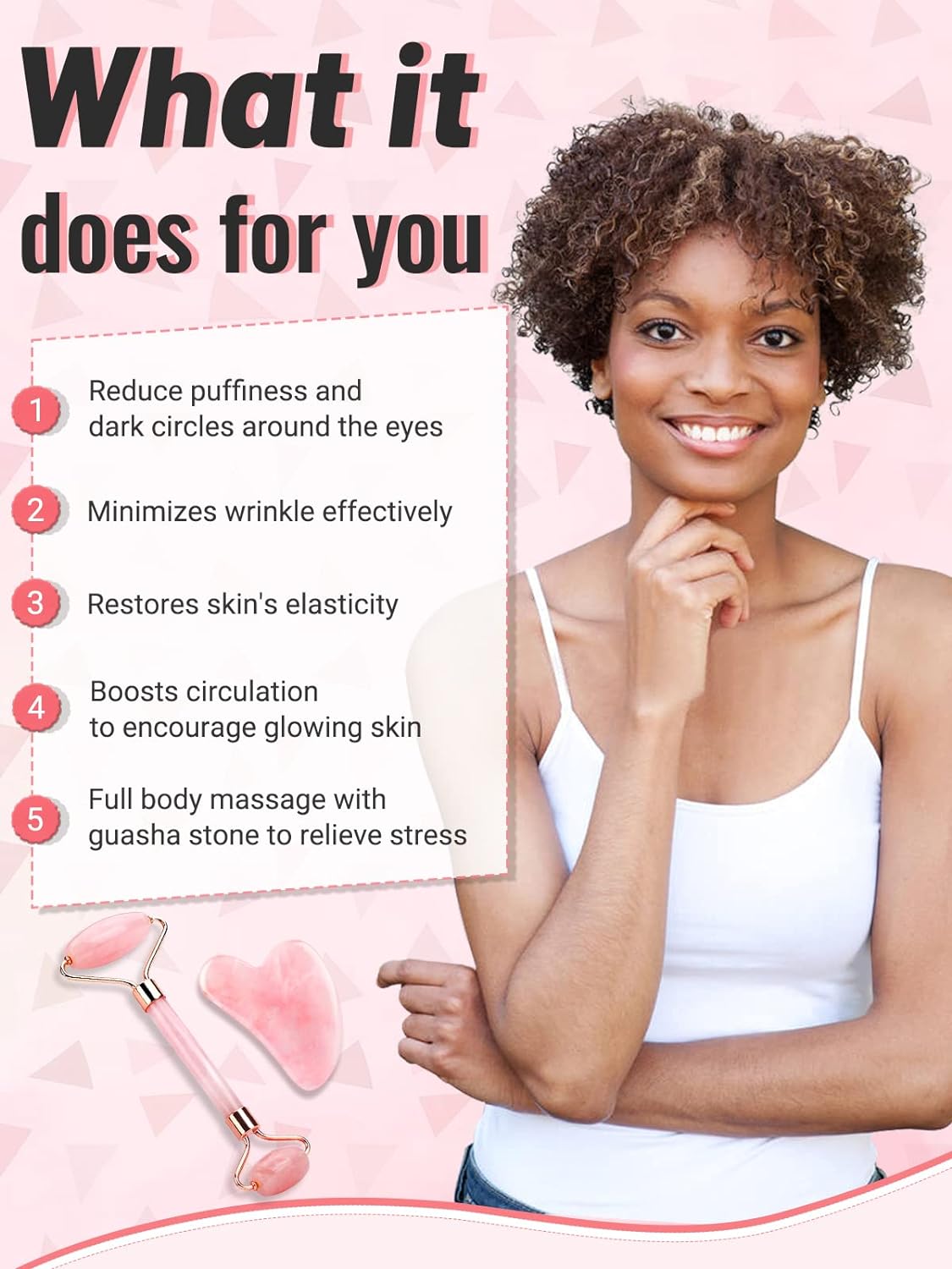 - ā A Meaningful & Lovely Gift - Give the special one a gift of love. The pink jade roller set comes in a beautifully designed package, which can be a great holiday gift for women in different festivals, like Christmas, Birthday, Women's Day, New Year,Valentine's Day,etc.