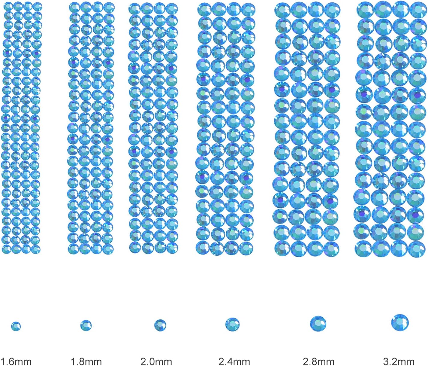 3456pcs Flatback Rhinestones Glass Charms Diamantes Gems Stones for Nail Art 6 Size ss4~ss12 Aquamarine AB