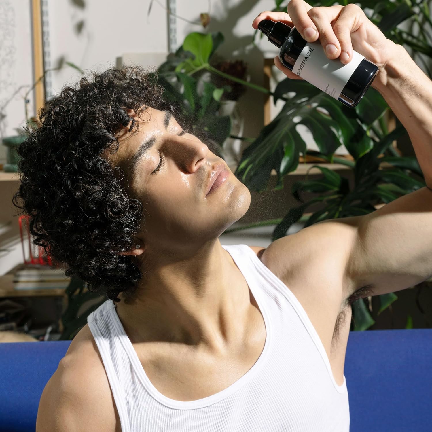 - WHAT IT DOES Rehydrates and restores moisture loss from cleansing and shaving. Removes excess oil and sweat with nourishing plant-based extracts. Repeat use throughout the day as a skin refresher.