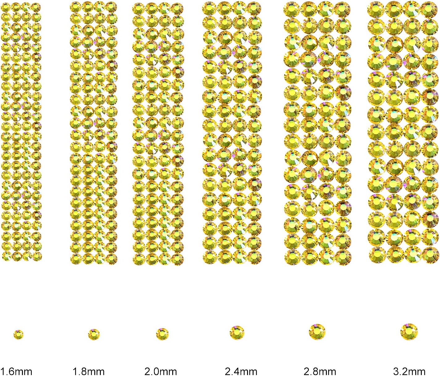 3456pcs Flatback Rhinestones Glass Charms Diamantes Gems Stones for Nail Art 6 Size ss4~ss12 Lemon AB