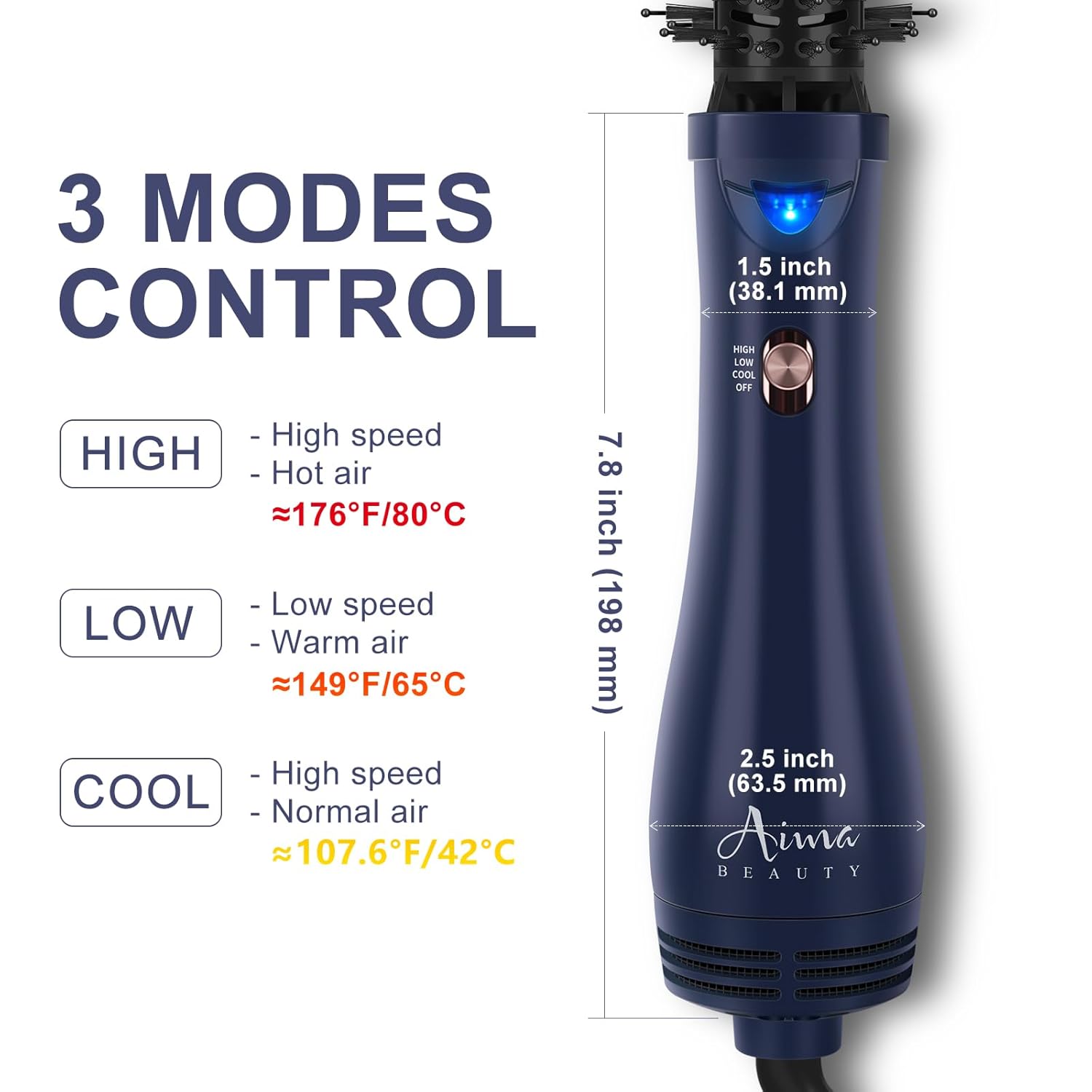 - ALl-IN-ONE FUNCTION BRUSH: Do you know how it can be tricky to hold a blow dryer in one hand and use your brush to style your hair with another? Aima Beauty hot air brushes aim to make that how to help process easier and easier. They are essentially 4-in-1 tools that combine the functions of a blow dryer brush, hair straightener, and hair curler. So our hot air brushes are great for those who change hairstyles frequently, but also those who need to look perfect for a special occasion.
