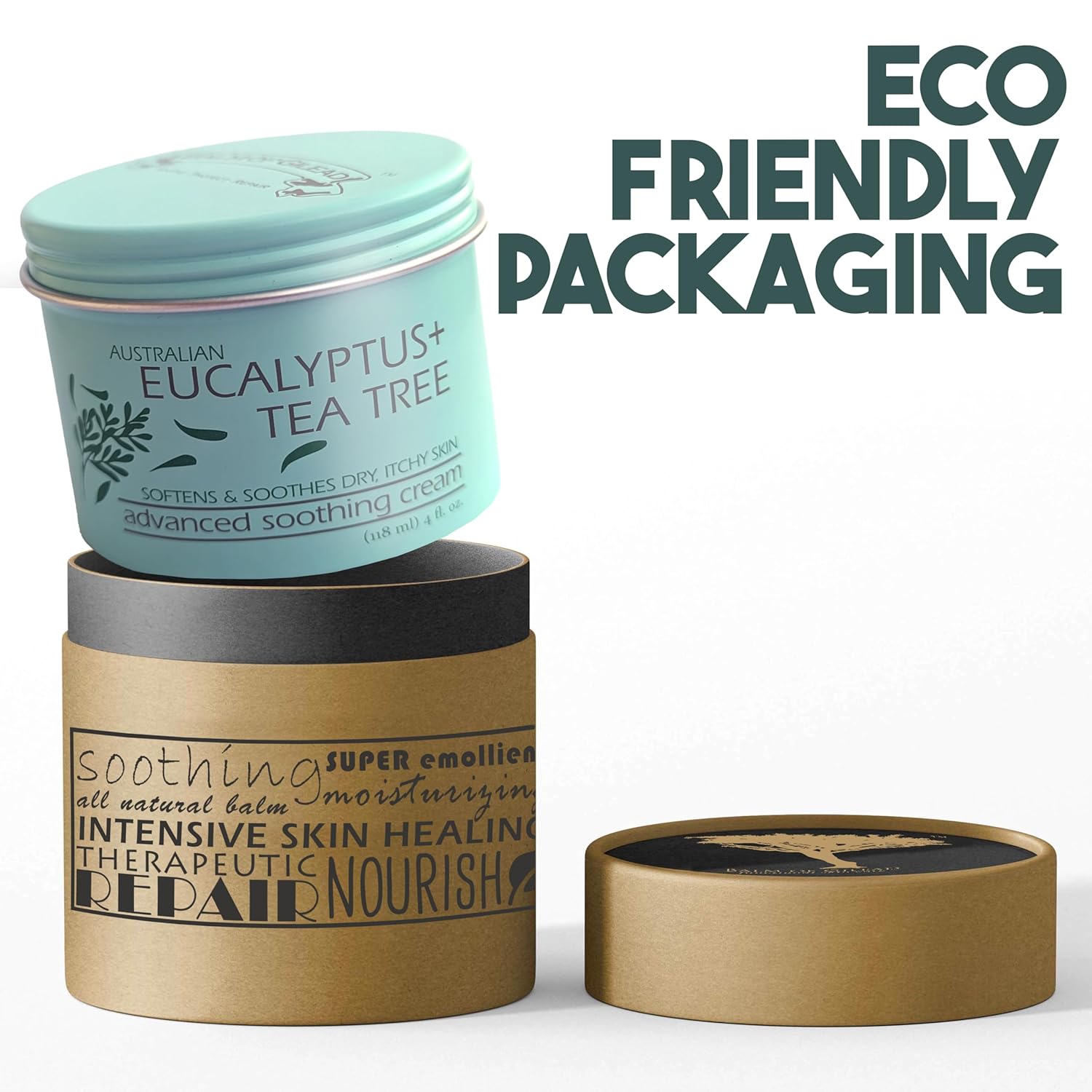 - šæ Soothing and Calming Moisture ā A nourishing foot and hand cream enriched with peppermint, Australian eucalyptus, and tea tree oils. This refreshing botanical formula helps soothe dry, rough, or irritated skin while delivering fast-absorbing hydration. Perfect for daily use on tired feet and overworked hands, this intensive tea tree balm leaves your skin feeling soft, smooth, and revitalized.