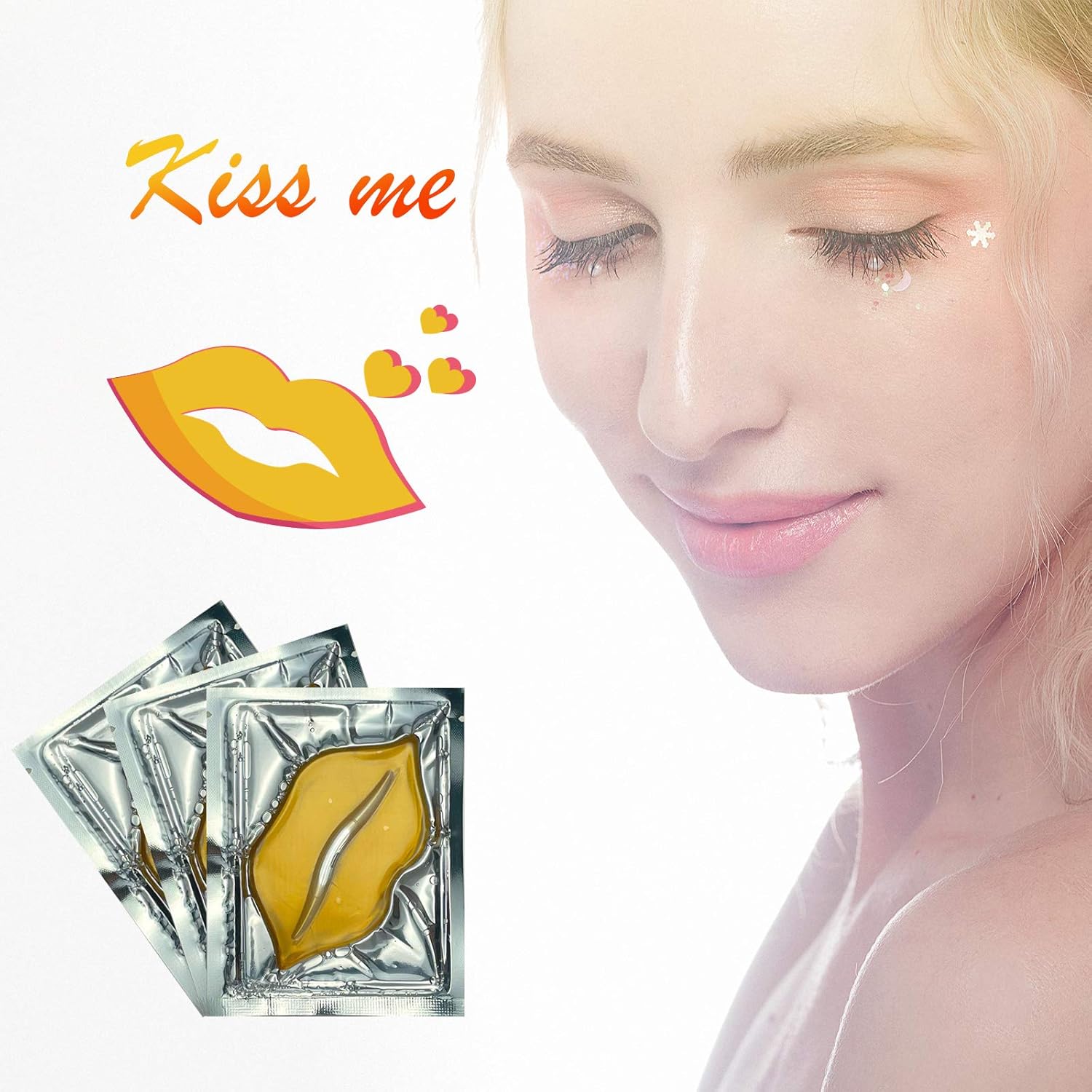 30PCS Collagen Lip Masks,Crystal Moisturizing Lip Care Pads Lip Patches for Dry Lips & Anti-Chapped, Smoothing Lip Fine Lines, Plumping Your Lips Attractive, Gold