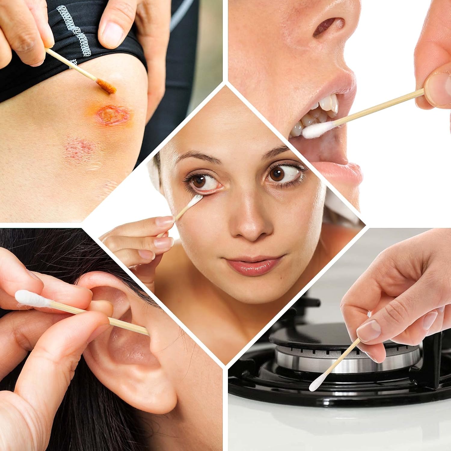 2000 Count Cotton Swabs Double Tipped Ear Cleaning Buds with Bamboo Stick 3 Inch Cotton Tip Applicators for Ears and Makeup