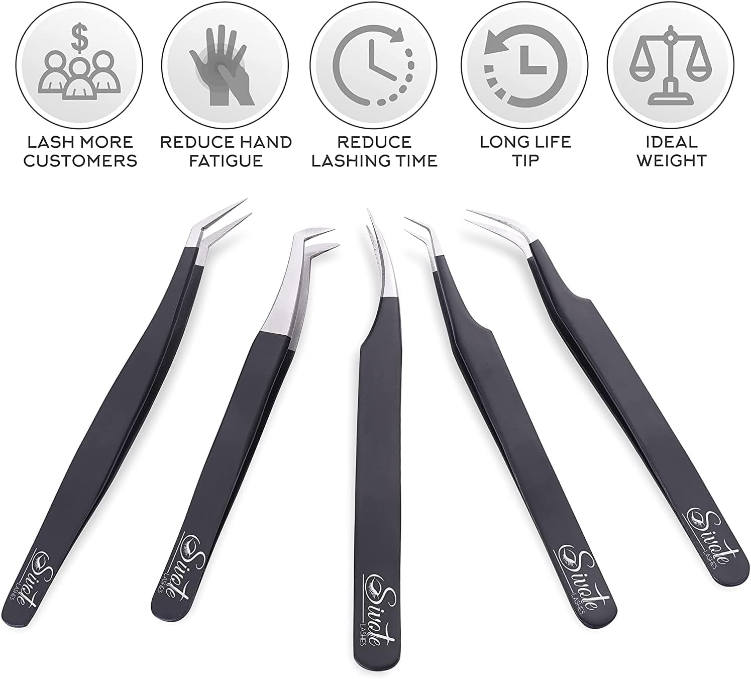 SIVOTE Eyelash Extension Tweezers for Classic & Volume Lashes, 5-Pack, Black
