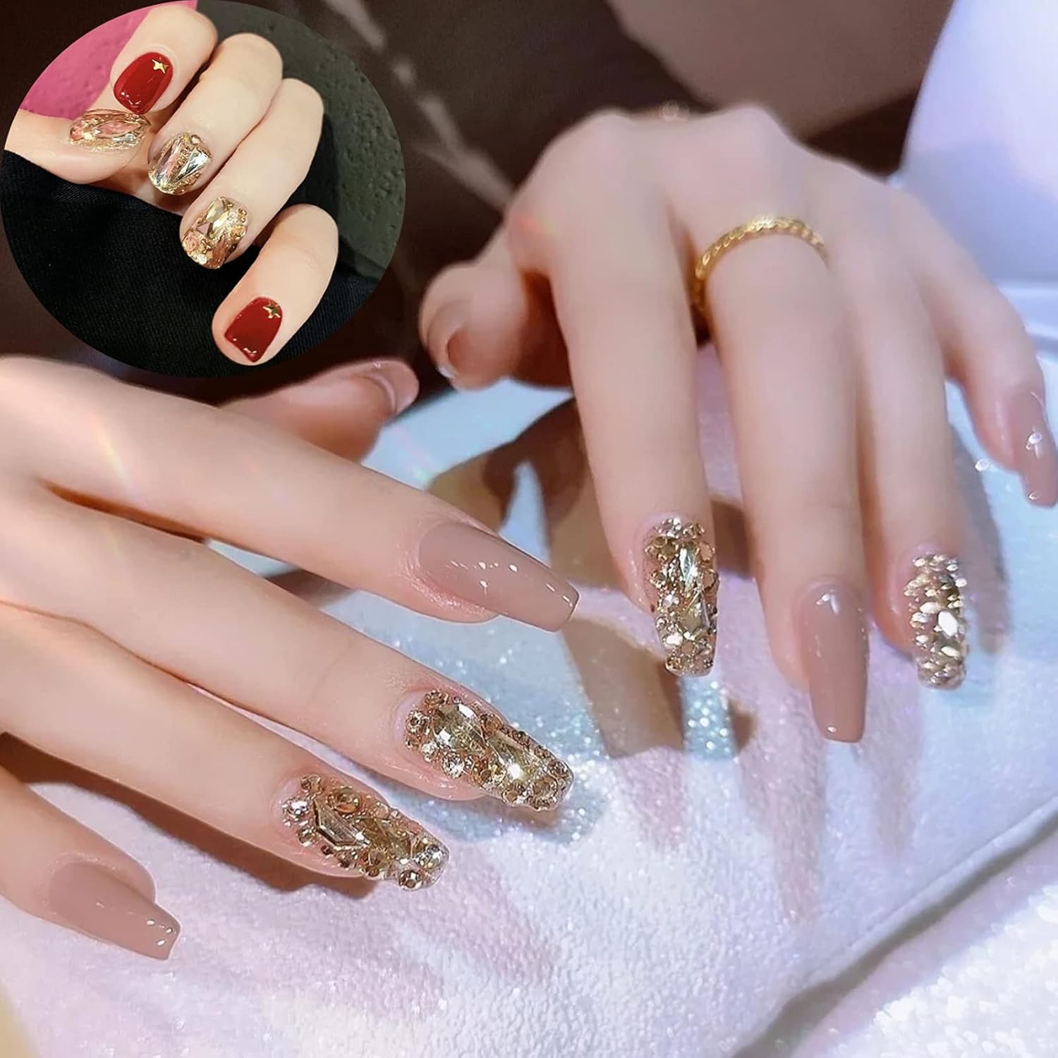 - 💎【Champagne Rhinestones for Nails】:The nail crystal kit includes 2500 round flat rhinestones of 8 kinds and 600 champagne special-shaped diamonds of 12 kinds in a transparent storage box, 1pcs nail rhinestones pen and 1pcs tweezers. Our 3D nail art rhinestones are available in different popular styles, which will add brilliance and charm to your craftsmanship and make your nails more dazzling and charming.