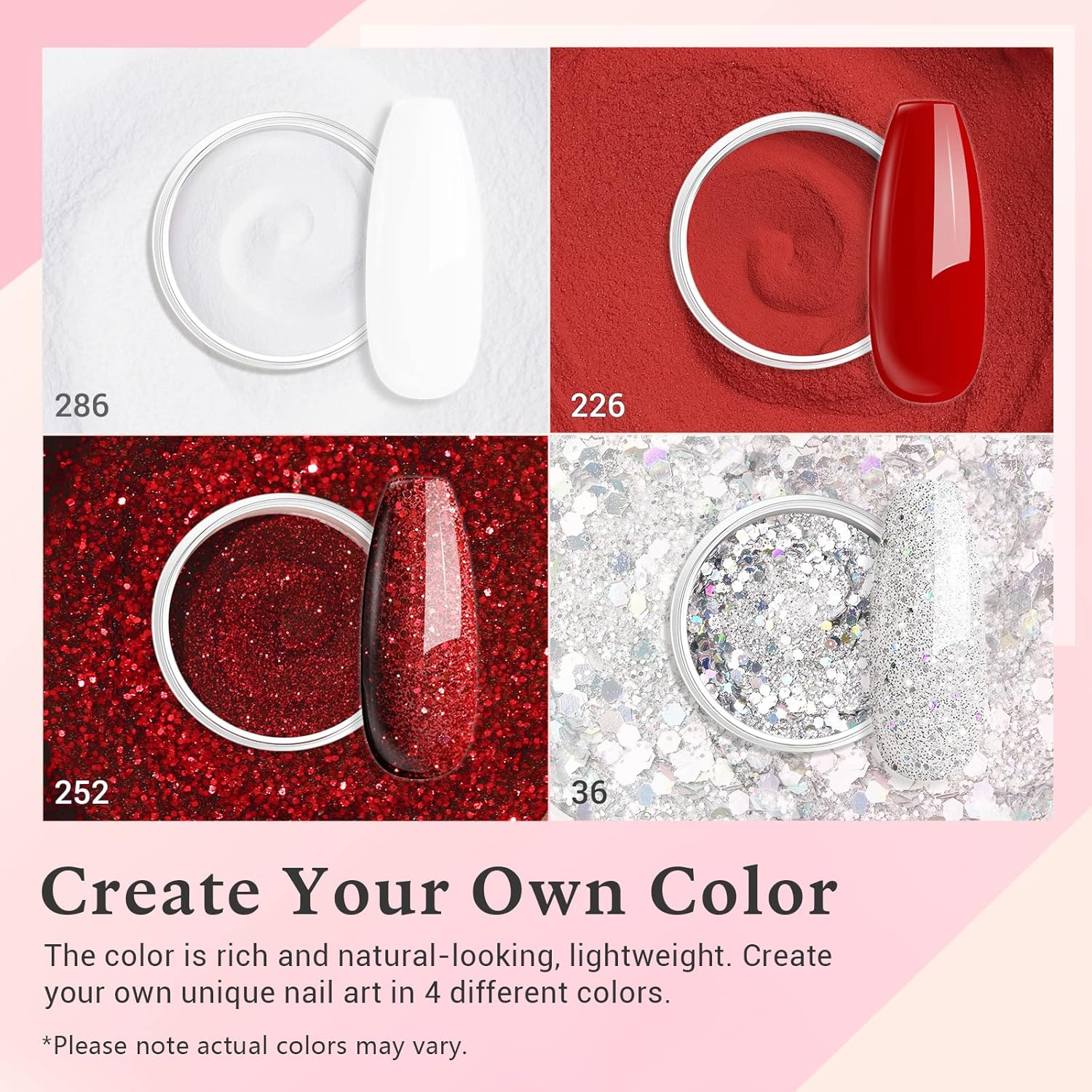 - What U Get: AZUREBEAUTY 12 PCS dignified dip powder nail starter kit—4*10 g color powder(rose apple berry red, sparkle red, snow white, silver glitter), 3*10 ml liquid set(base coat/activator/topcoat), 2*liquid brush replacement, 1*nail brush,1*nail file, 1*dip powder tray