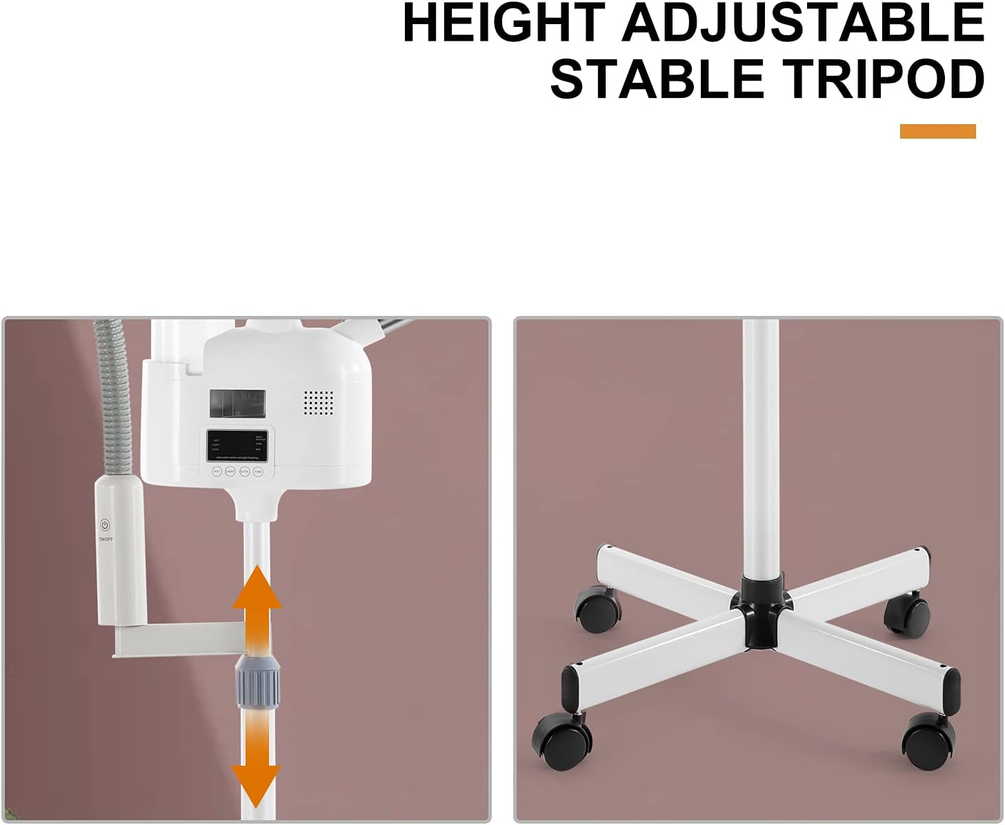 - ROTARY AND MOVEABLE - 360 degree rotary spray pipe allows to moisturize your face; Rolling wheels makes it convenient to move this facial skin care machine around the room. There is an aroma diffuser at the nozzle mouth, you can put the aroma diffuser and use it
