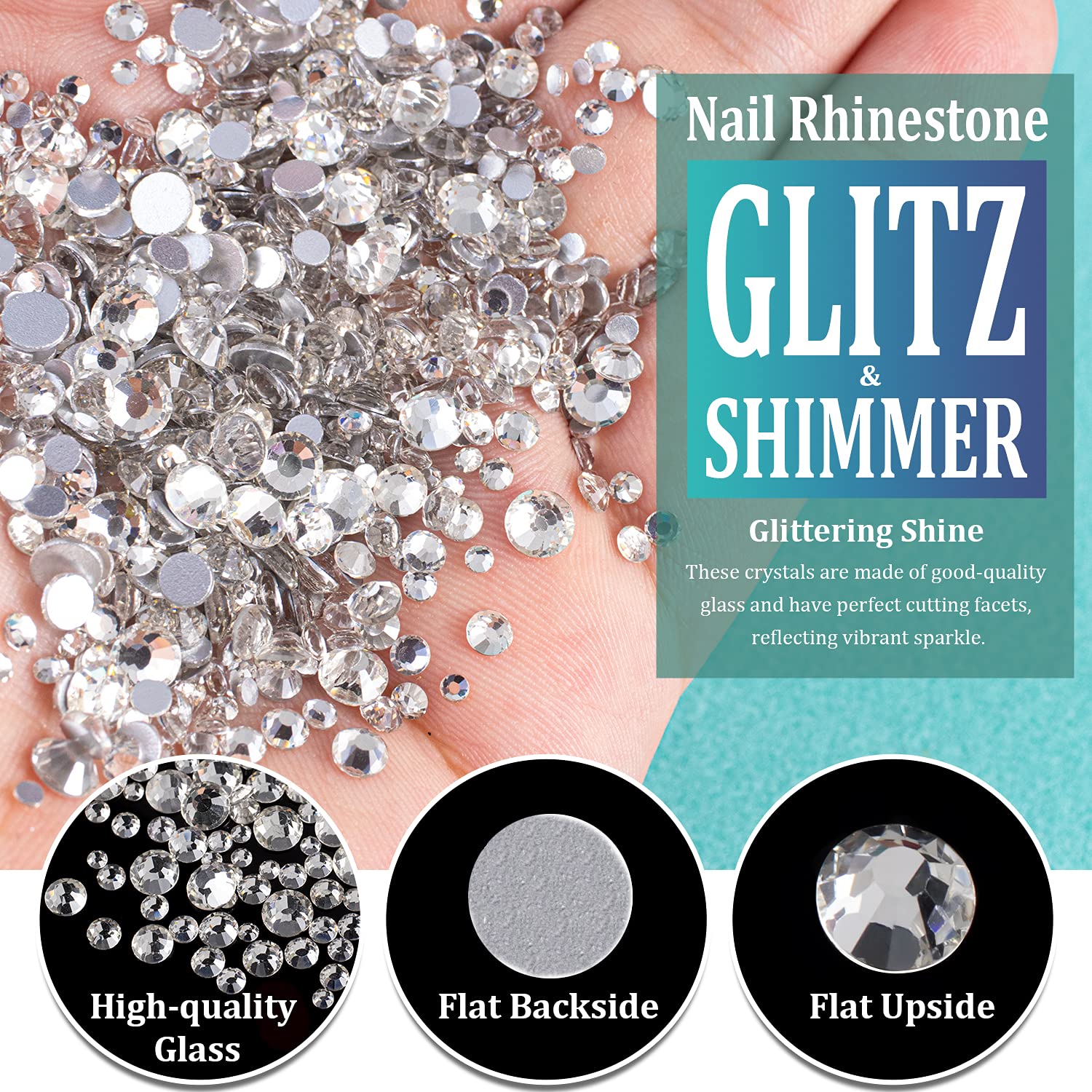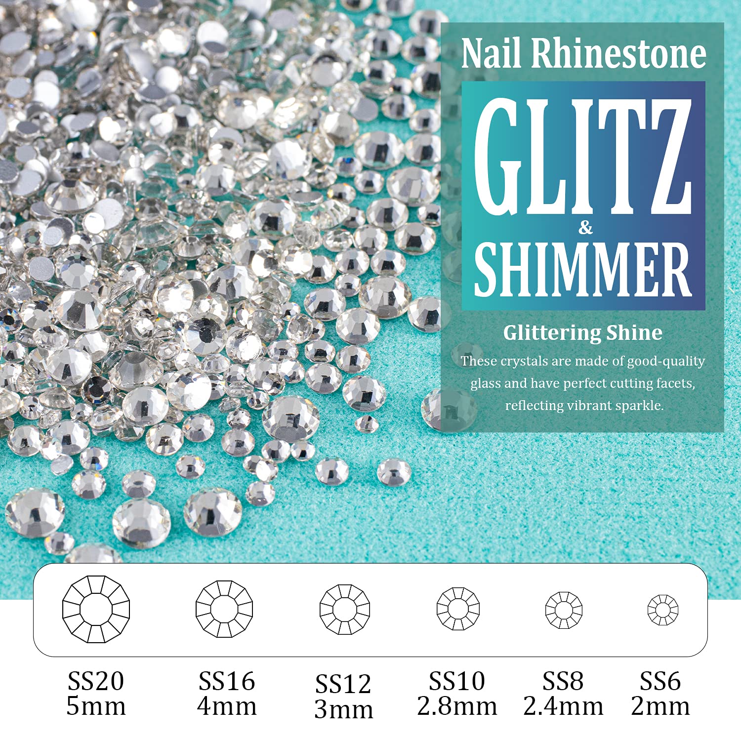 • ❤BRIGHT & VIBRANT SPARKLE -- The Nail Crystal Is Made of High Quality Glass And Has Delicate and Exquisite Shine. The Perfect Cutting Facets Endow Each Bead With Vibrant Glitz And Shimmer.