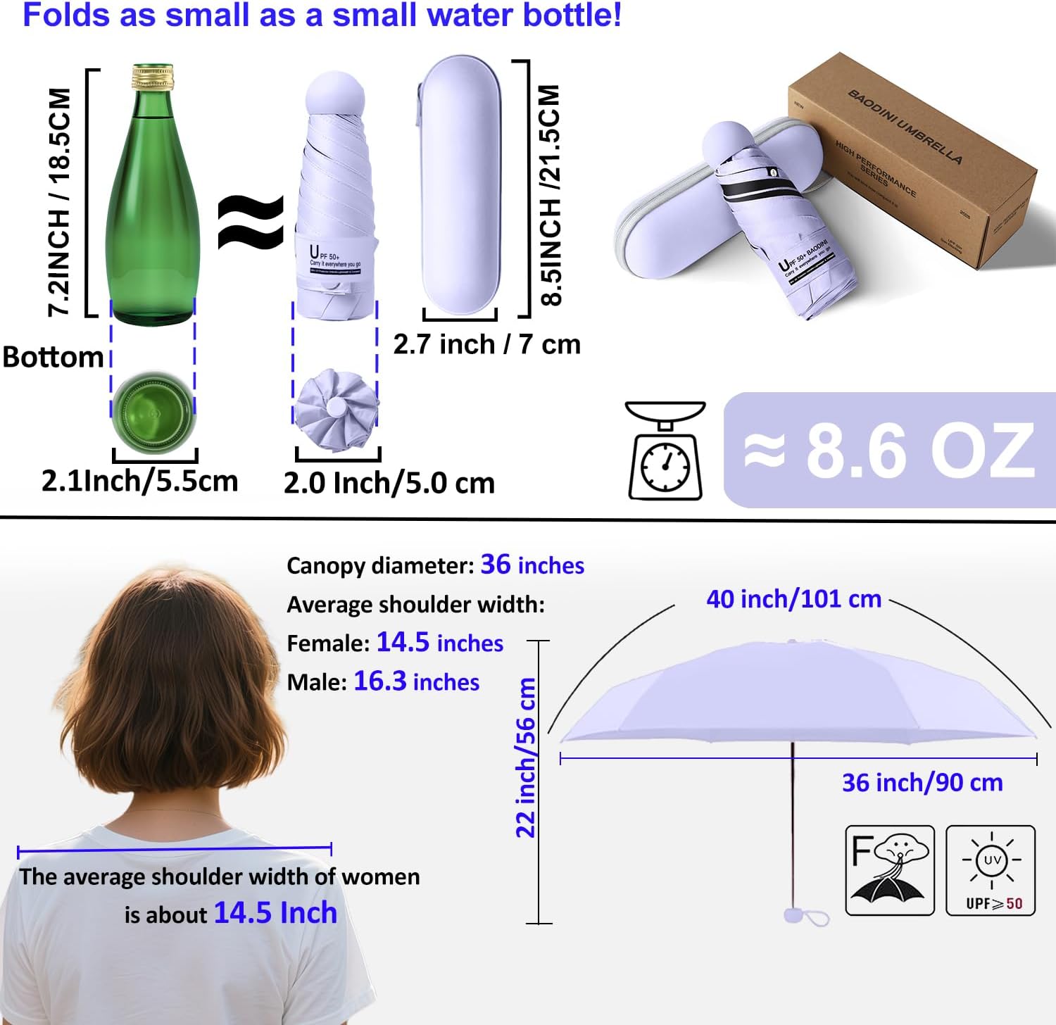 BAODINI Travel Mini Umbrella for Purse With Case Small Compact UV Sun Protection Sun Lightweight Tiny Pocket Manual Open Close Umbrella for Women Kids and Men