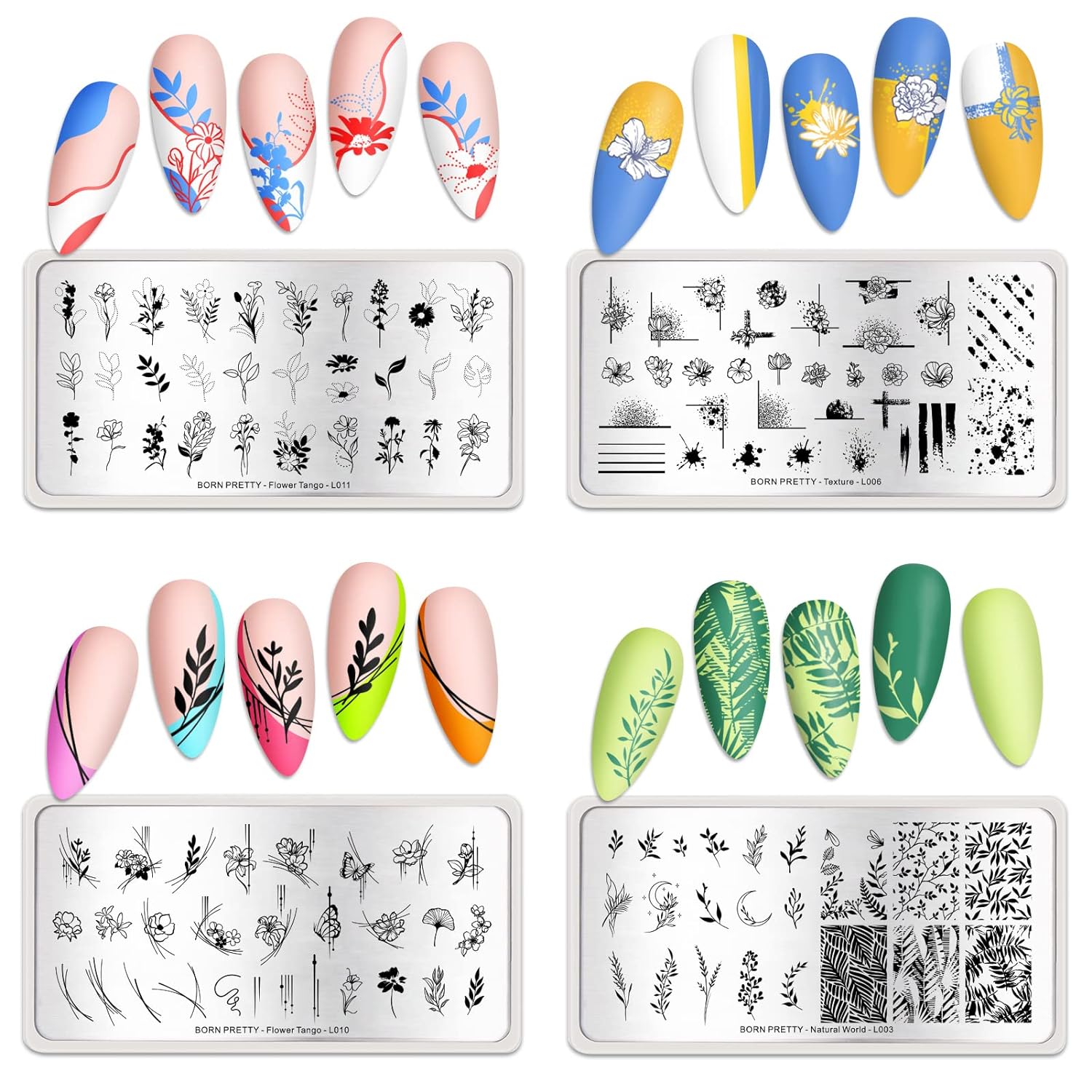 BORN PRETTY Stamping Temeplates Nail Art Stamping Plates Flower Leaves Theme Nail Image Plates Nail Manicuring DIY Printing Tools 4PCS