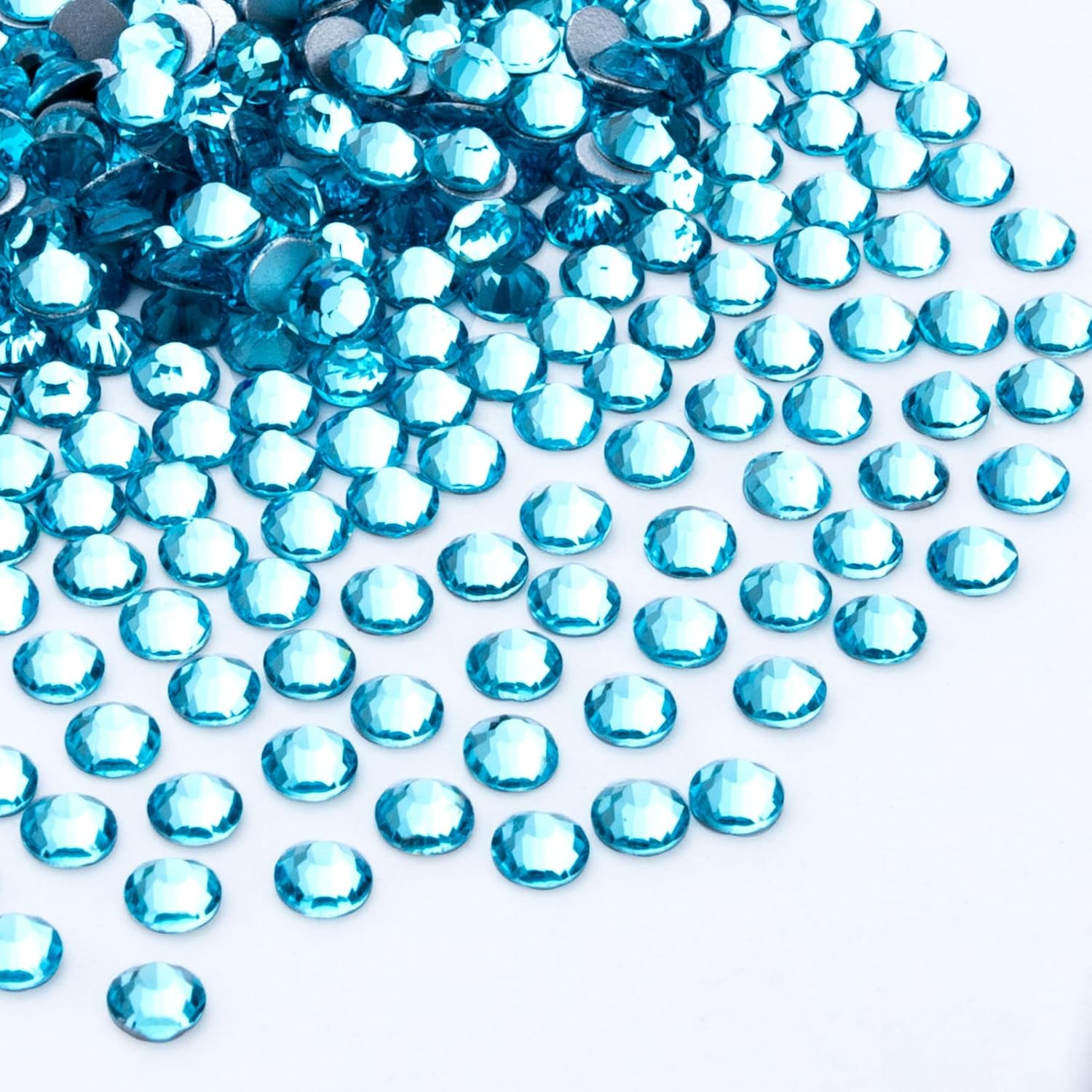 288Pcs Aquamarine Crystal Rhinestones,Glass Flatback Rhinestones Gemstones for Nail Face Makeup Art Crafts Clothes Decoration -(SS30, 6.5mm,Aquamarine)