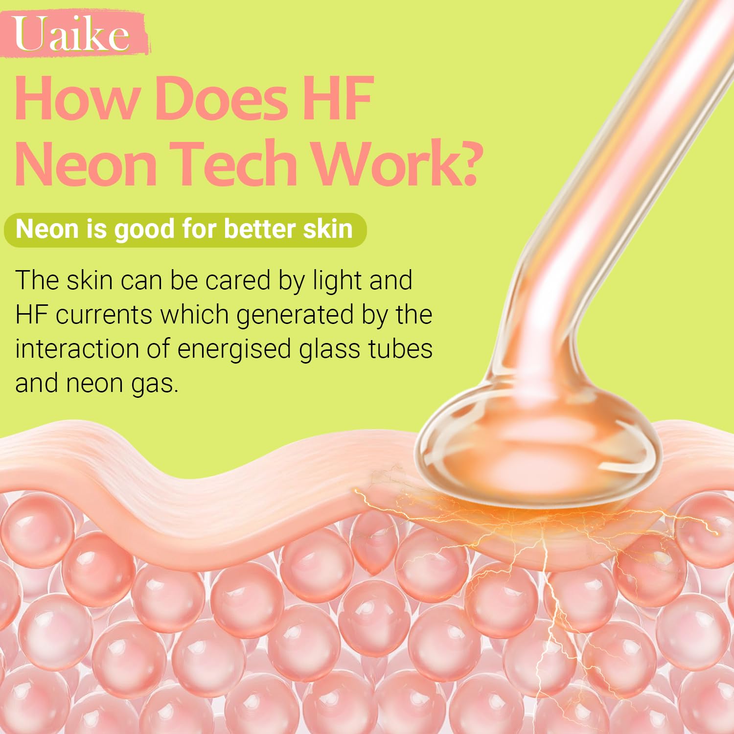 - High Frequency Technology: Uaike orange portable high frequency facial machine through the glass tube to bring orange high frequency, and brings you results. It adopts a high frequency technology. Let you use more at ease