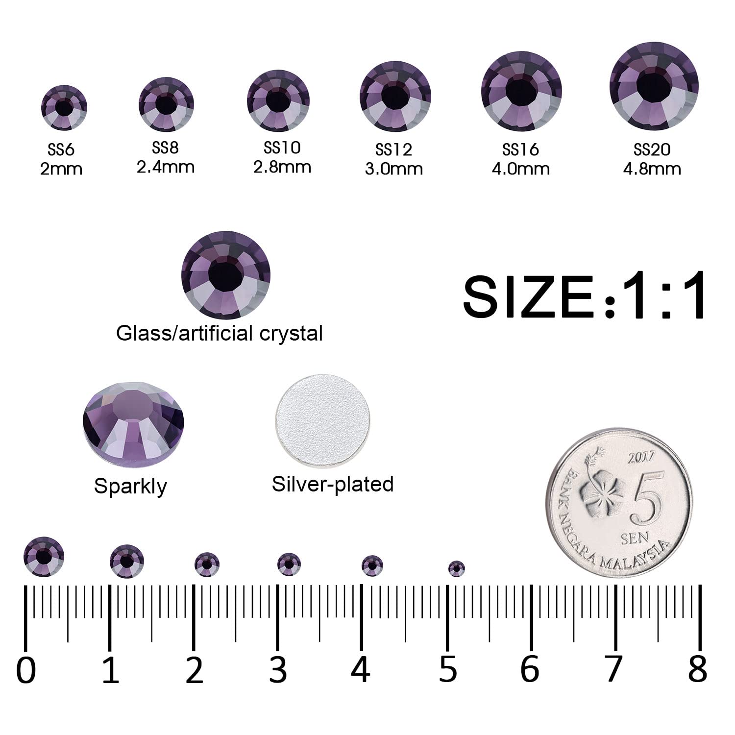 4240Pcs Flatback Purple Rhinestones Glass Crystal Gemstones for Nail Art Face Makeup Bling Round with Tweezers and Picking Pen (SS6~SS20 Set)