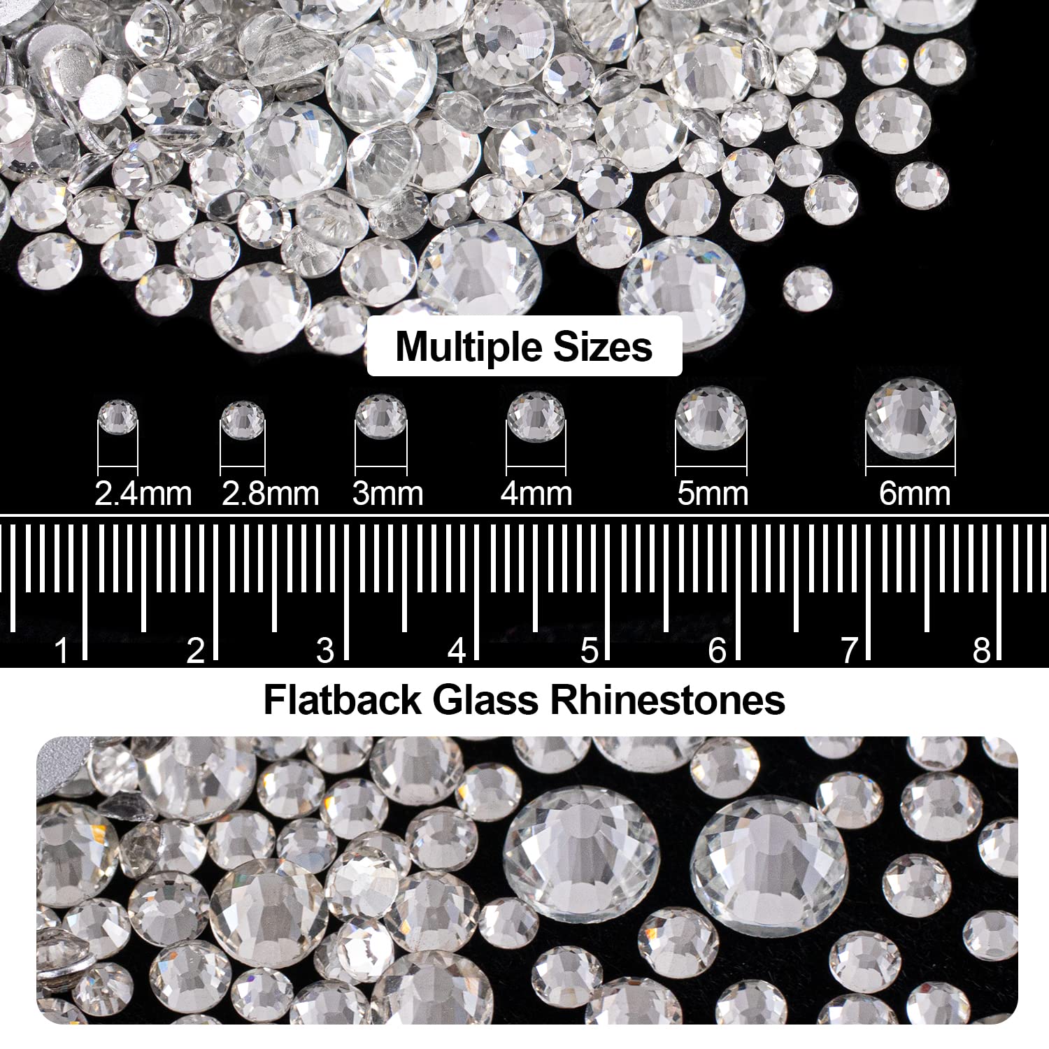 - 💎WHAT YOU WILL RECEIVE -- 1 Box of 12 Colors And 4 Sizes Flatback Colorful Nail Art Crystal Rhinestones; 1 Box of 6 Sizes Flatback Round Clear Gem Stones; 1 Pc of Quick Dry Glue; 1 Pc of Picker Pencil; And 1 Pc of Tweezer. This Set Is Good for Both Professional Nail Tech Salons and Starters For Face Make Up, Nail Art Or Decorations.