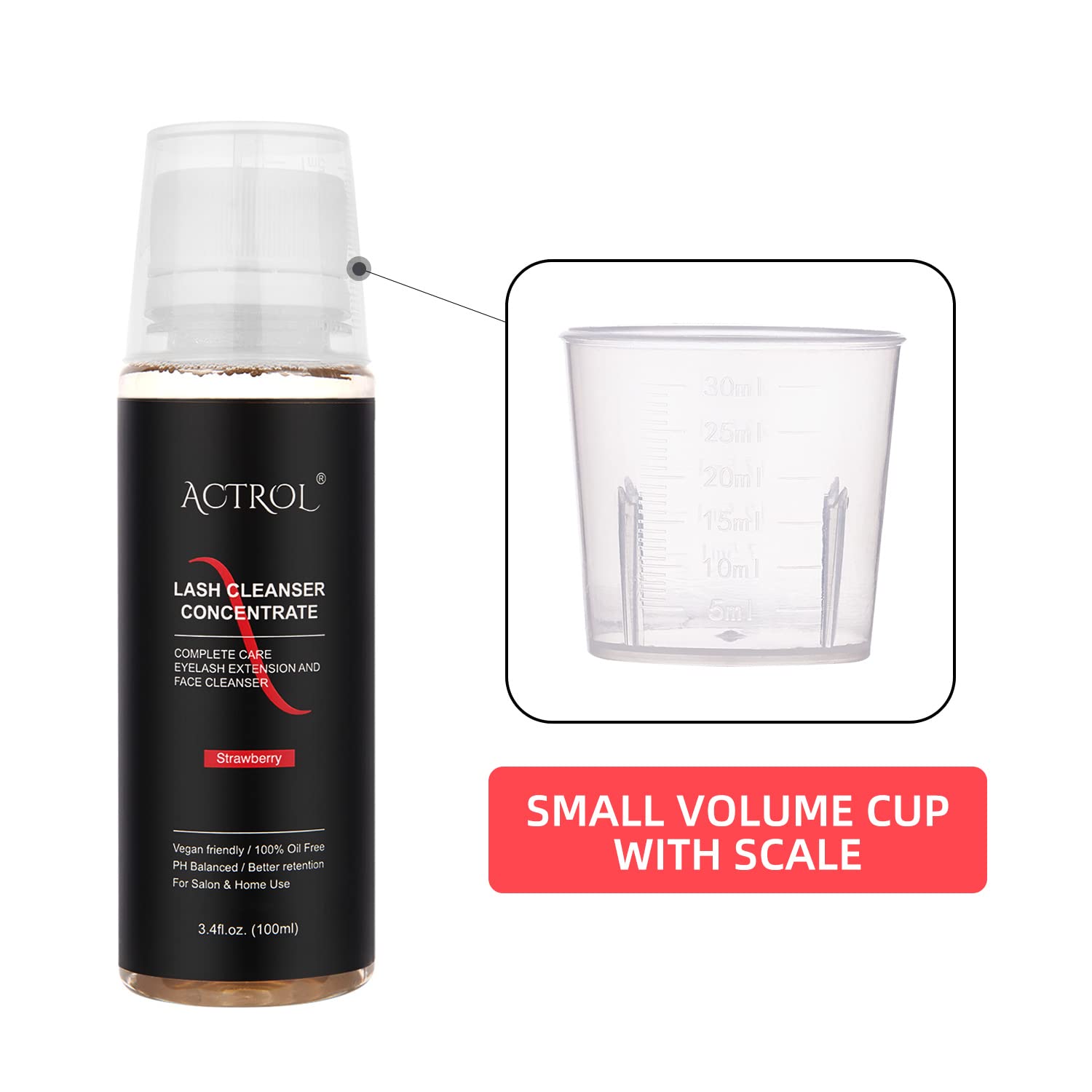 Eyelash Cleanser Concentrate 100ml Strawberry Professional Lash Shampoo Foaming Cleanser Paraben & Sulfate Free Non-lrritating Wash for Extensions Lashes Care-Makes 20 Bottles