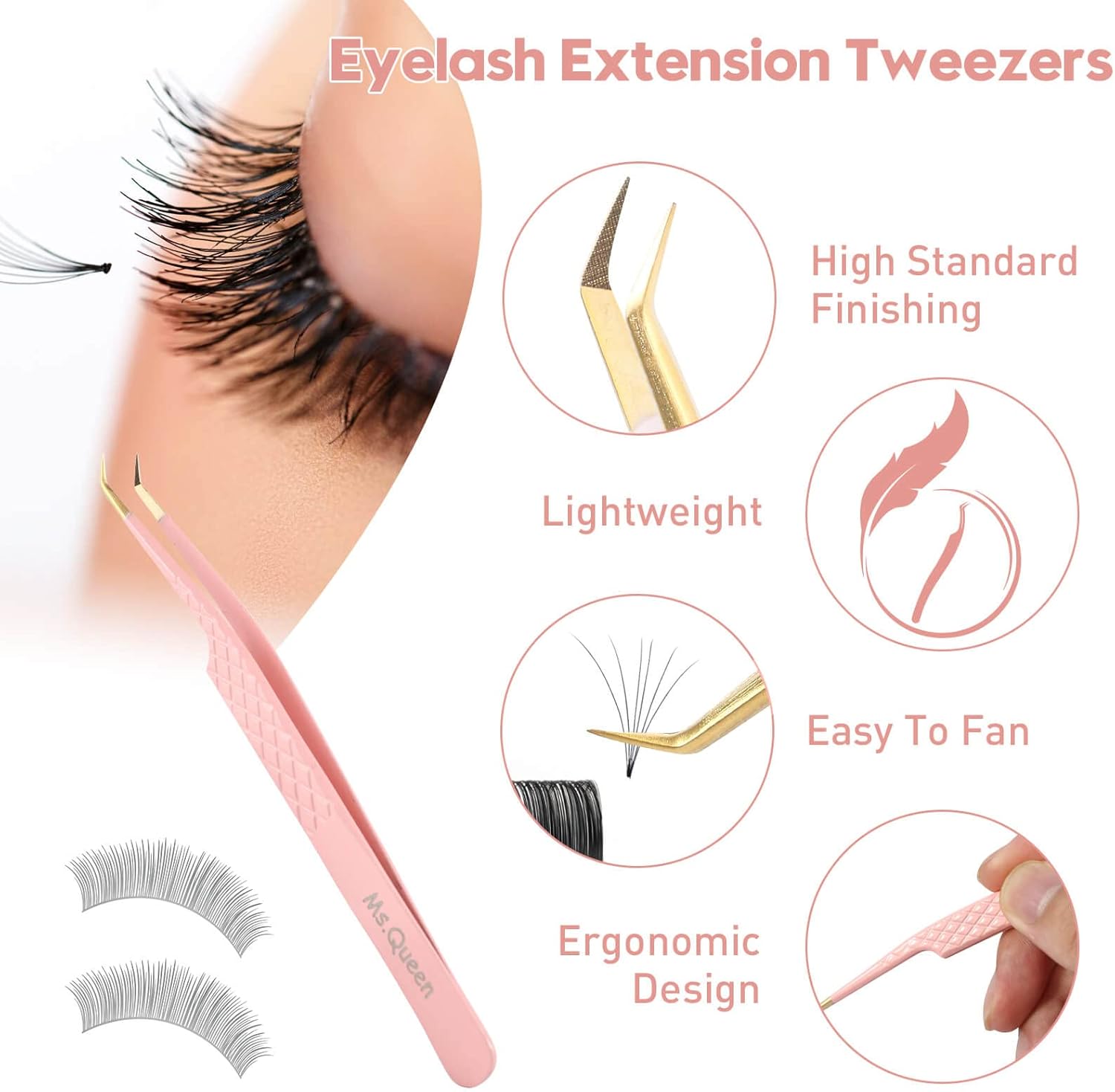 Ms.Queen Tweezers for Lash Extensions,Precision 45 Degree Lash Tweezers for Volume Classic Lashes Premade Fans