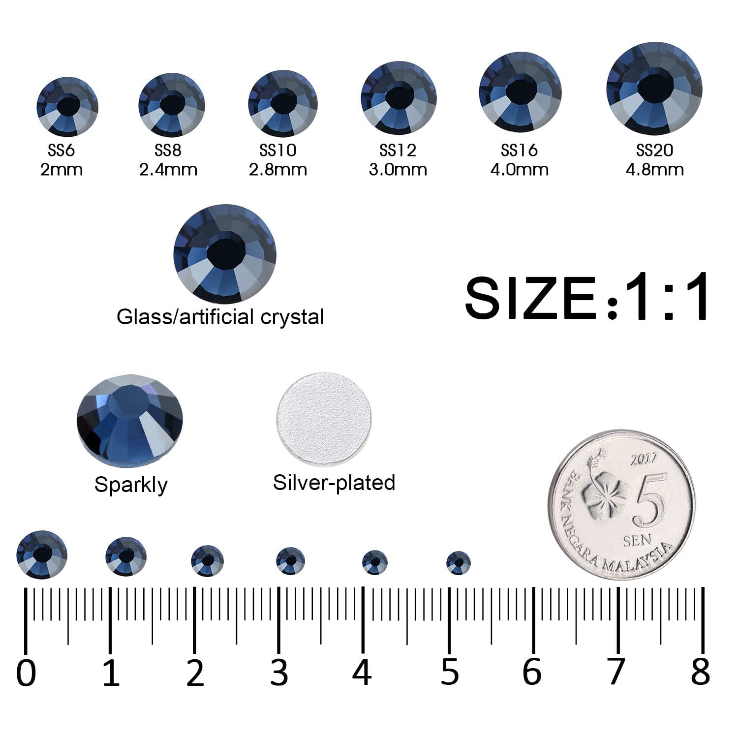 - 💎Material: glass/artificial crystal. The surface has a high-precision section, multi-faceted cutting, high brightness and high gloss. Flat bottom, round shape, silver plated back, non-allergenic. The color runs through the rhinestones without fading.