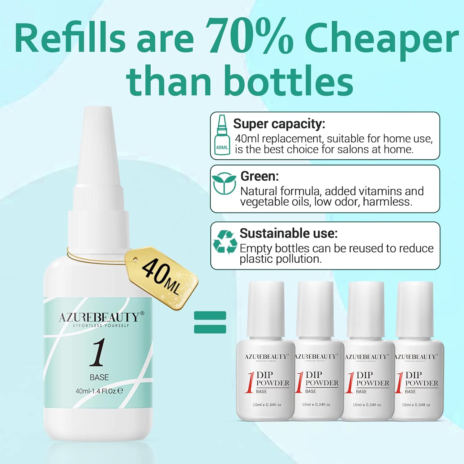 - ā Ideal Gifts & Trusted Brands: AZUREBEAUTY nail dip super capacity Base Coat with more advanced and Ideal gift for your sister, mom, and friends. # Note: According to different skin symptoms, it should be tested before use to check if there is any reaction.#