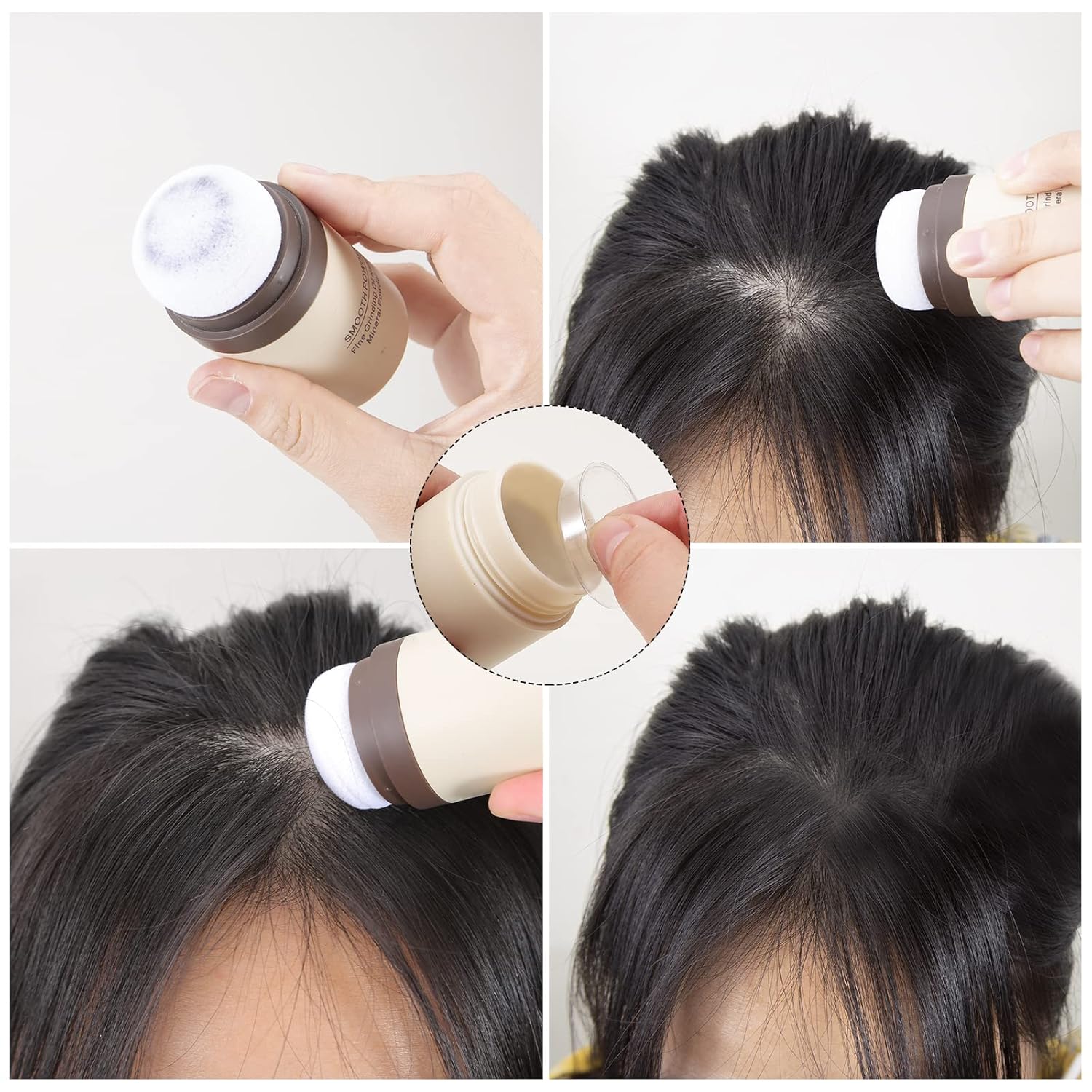 - Root Concealer: Color close to hair color (white, brown, dark brown). It can be colored quickly and naturally finishing, enhancing the forehead. Blends in with hair color and covers thinning hair lines.