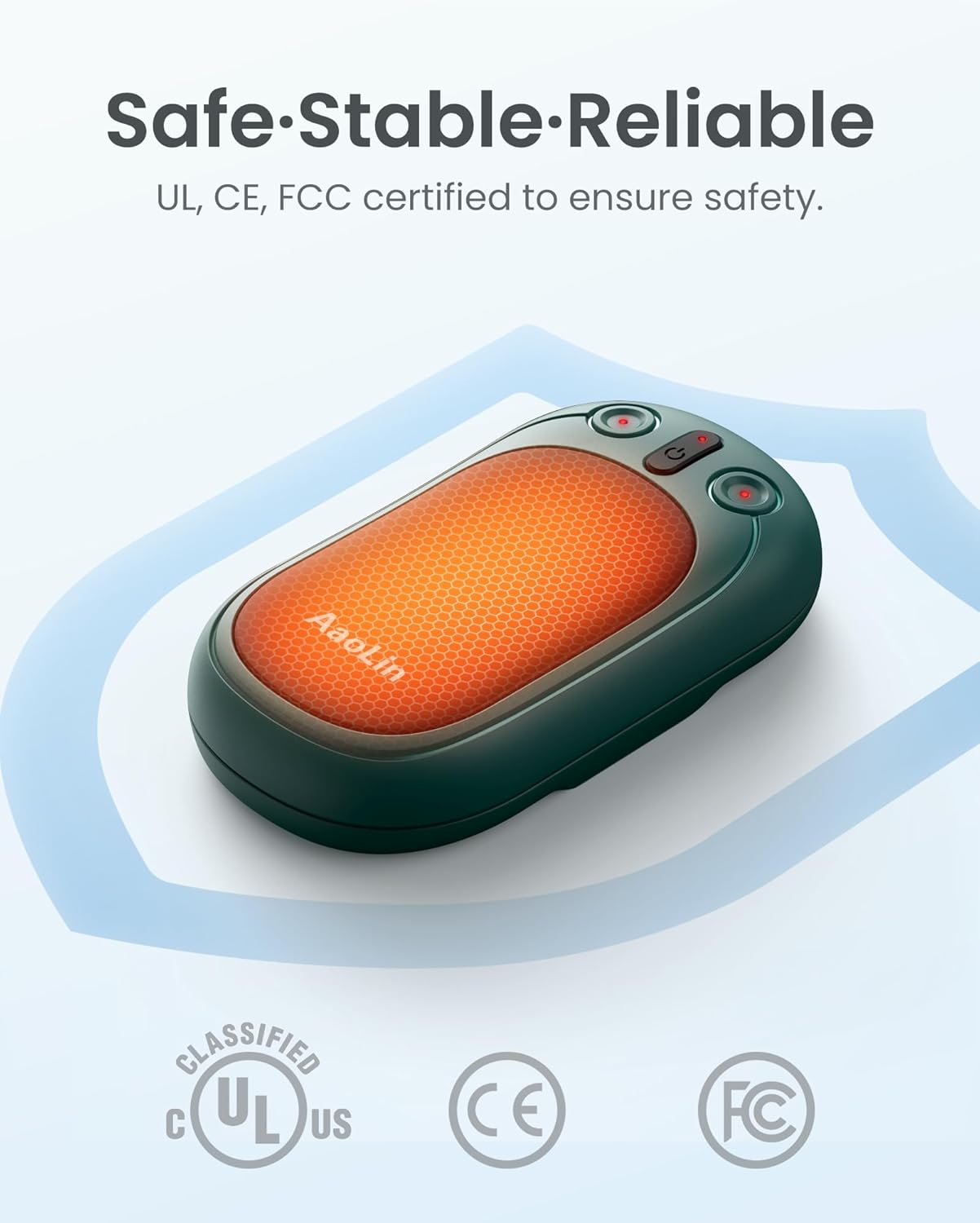 AI Hand Warmers Rechargeable, AaoLin 2 Pack Electric Hand Warmers Reusable, 12Hrs Long Heating, Portable Pocket Handwarmer Great Gift for Outdoors, Camping, Golf, Hunting Gear