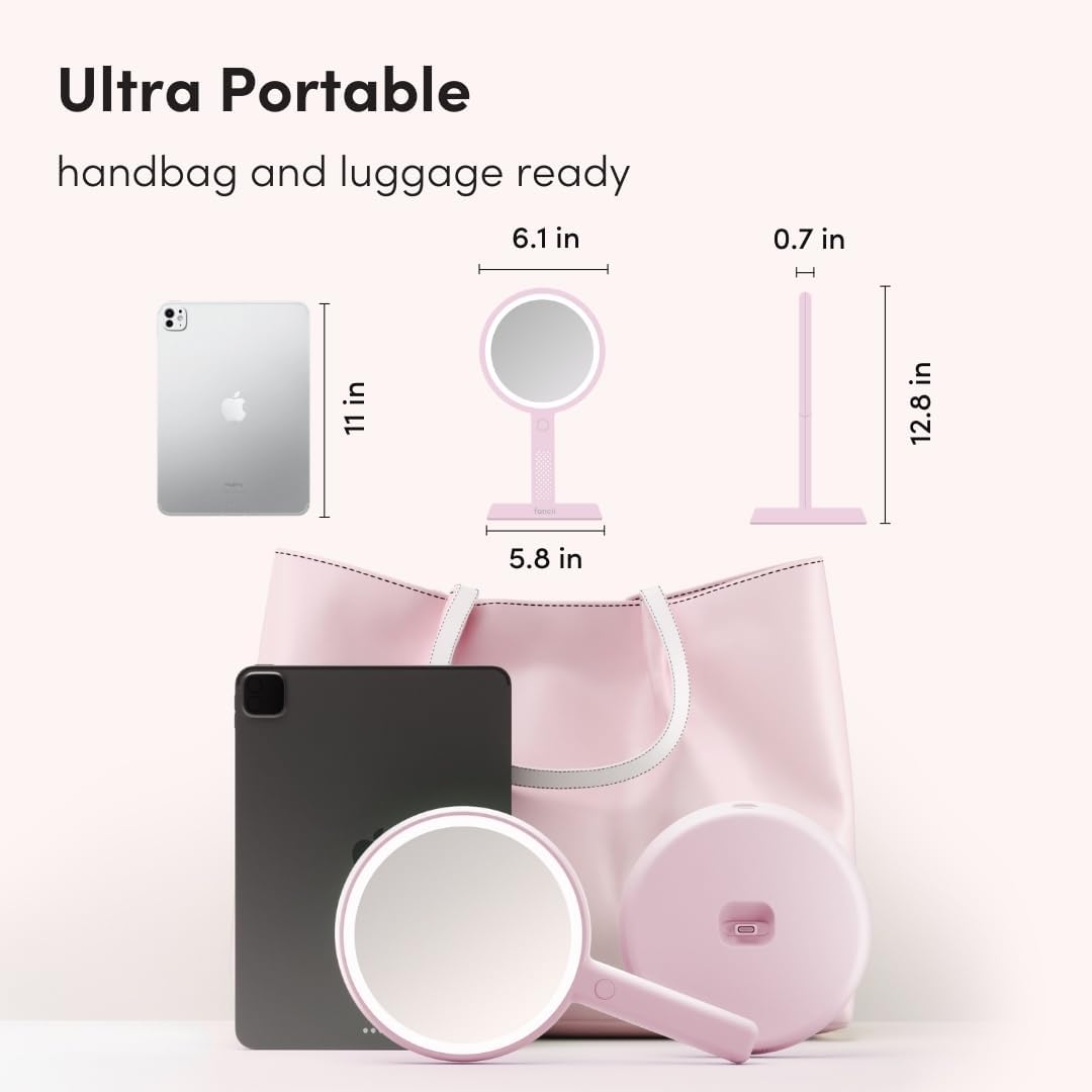 - Handheld & Hands-Free β Use Cami as a handheld mirror or attach it to the included stand for a vanity setup. The stand tilts up to 30Β° for hands-free, precise makeup and grooming.