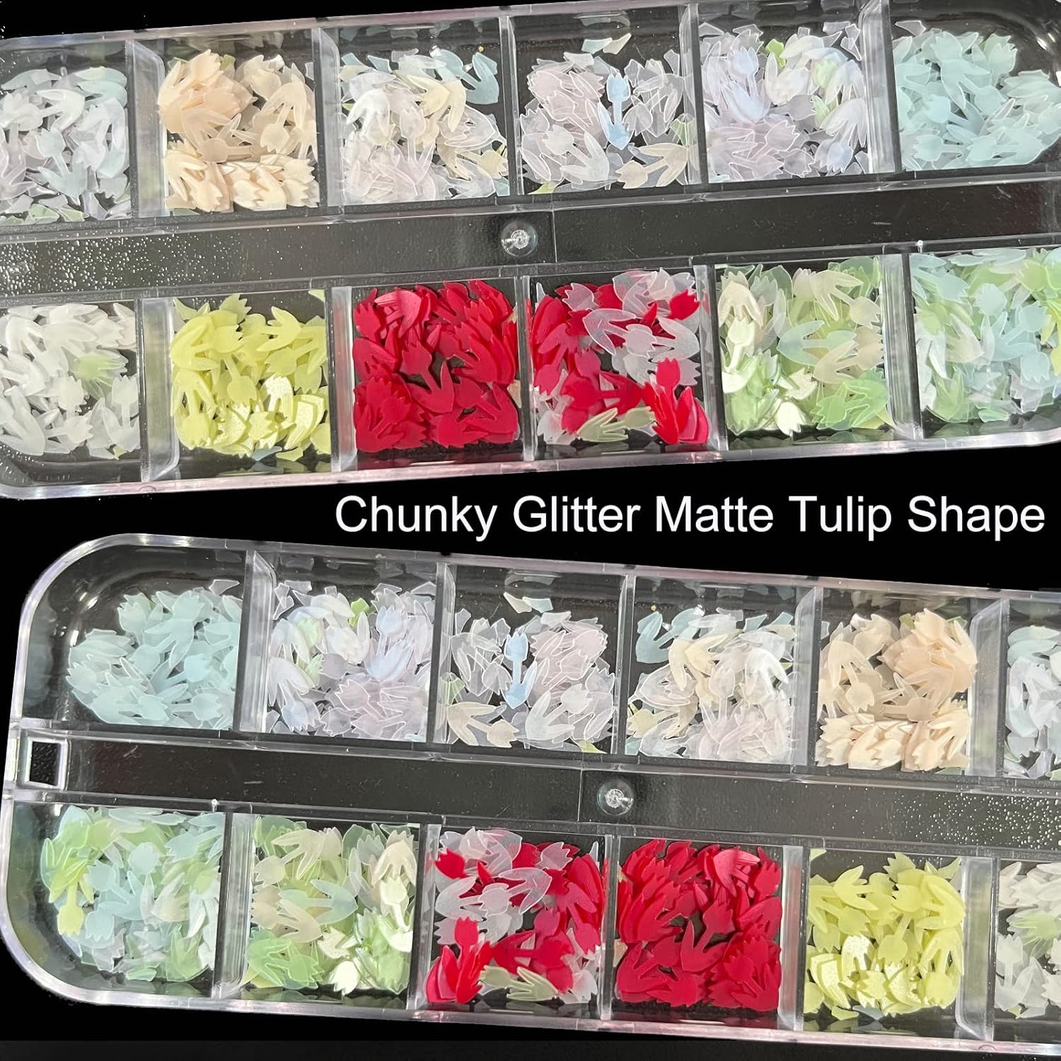 • Pretty colors and shapes, 1 box of 12 colors iridescent fluorescent hexagon nail glitter, 1 box of bright colors mixed shape star, heart nail sequins, 1 box of thin flower nail glitter flakes, 1 box of colorful flower heart butterfly rabbit chunky glitter