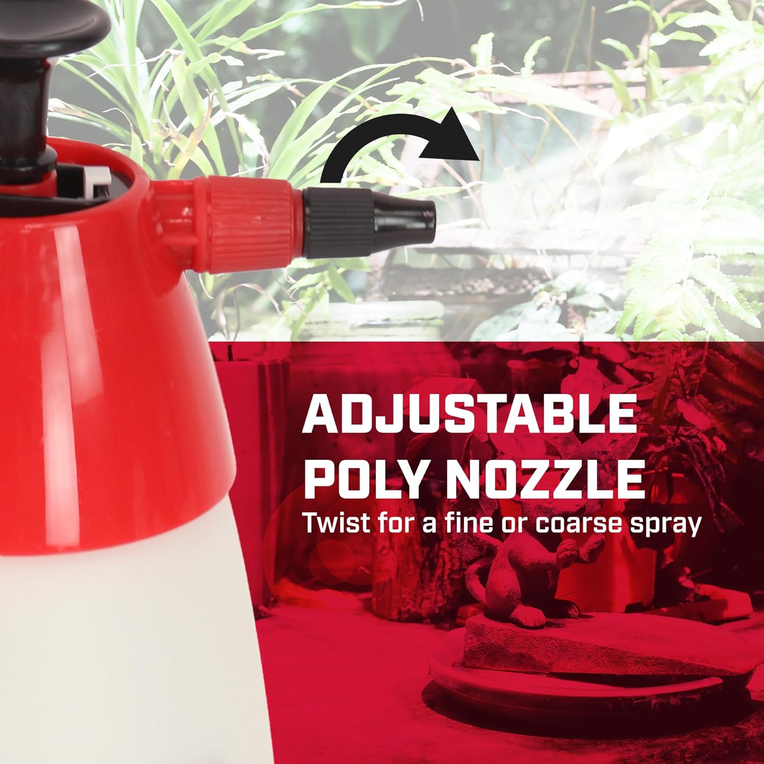 • THE SPECS MAKE IT GREAT: It’s easily to carry and store on shelf, in a closet, tool box, or back of a truck. Comfortably grip the ergonomic handle with gloves and use the thumb-controlled shut-off to control the spray while working. Twist the adjustable poly cone nozzle to spray a stream or shower depending on your application.