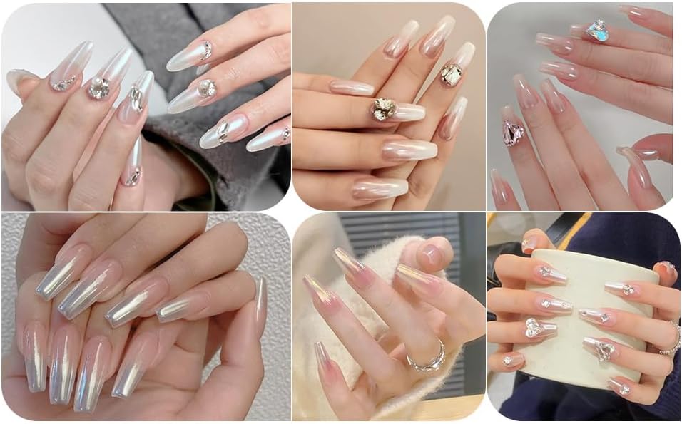 - 【PACKAGE CONTENTS】:1 PCS White chrome nail mirror pearl pigment powders.It needs to be used with gel nail polish and no wipe top coat