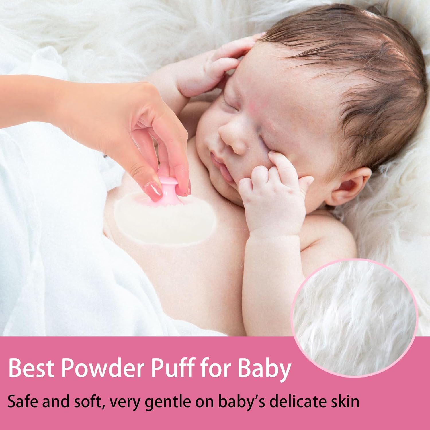 - ă2 Body Powder Puffsă: Considering the daily needs of our customers, our body powder container is equipped with 2 body powder puffs which made of delicate and smooth touch artificial woolïŒodorless, individually packaged. The large powder puff with a handle can directly take an appropriate powder apply for body, fast and convenient! The small puff (2.36 ") can take a small amount of powder more delicate and apply evenly on baby skin.