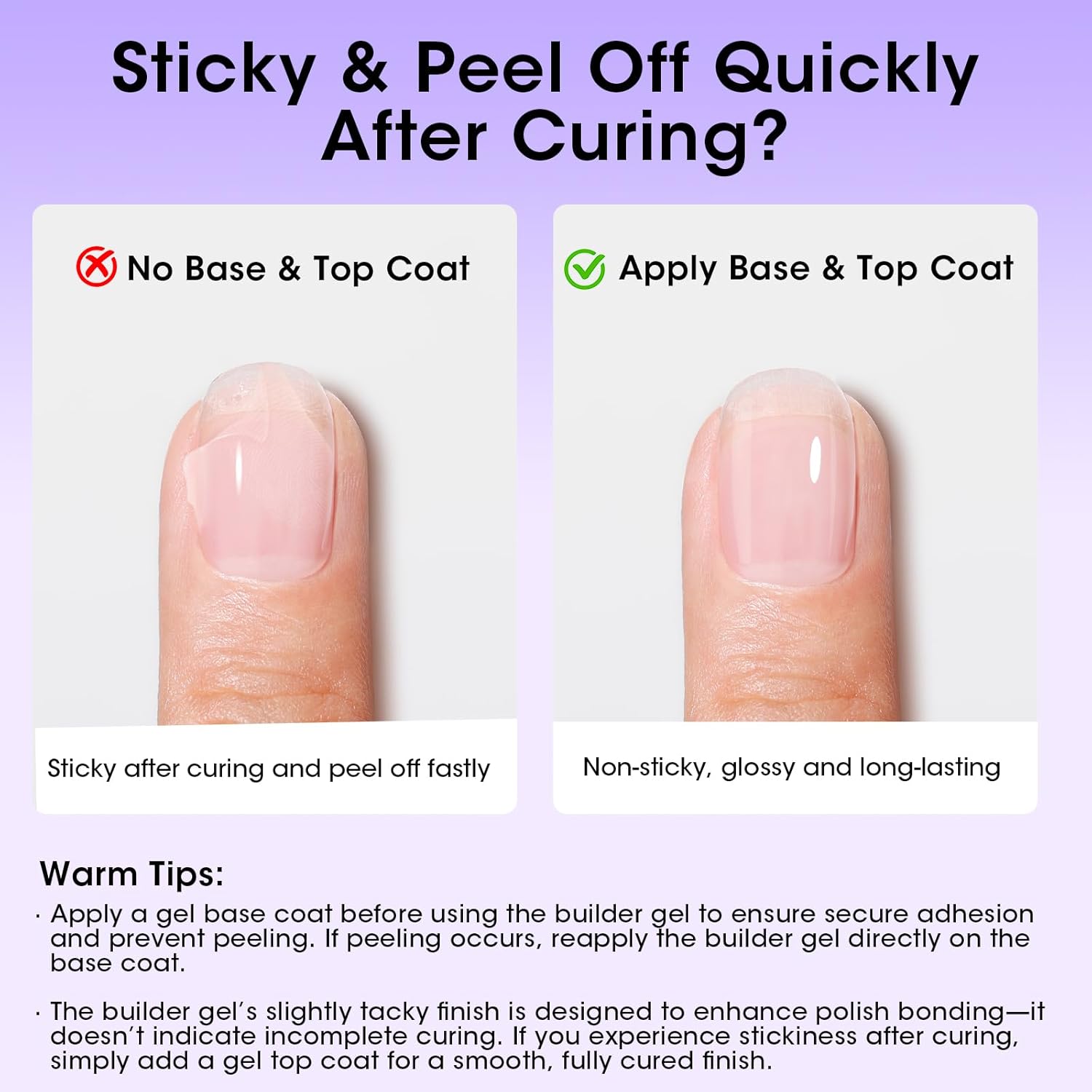 • INCLUDES FULL-SIZE GEL & USAGE GUIDE: Each package contains one 18 ml bottle of clear builder gel and detailed instructions. Please note that base and top coats are sold separately.