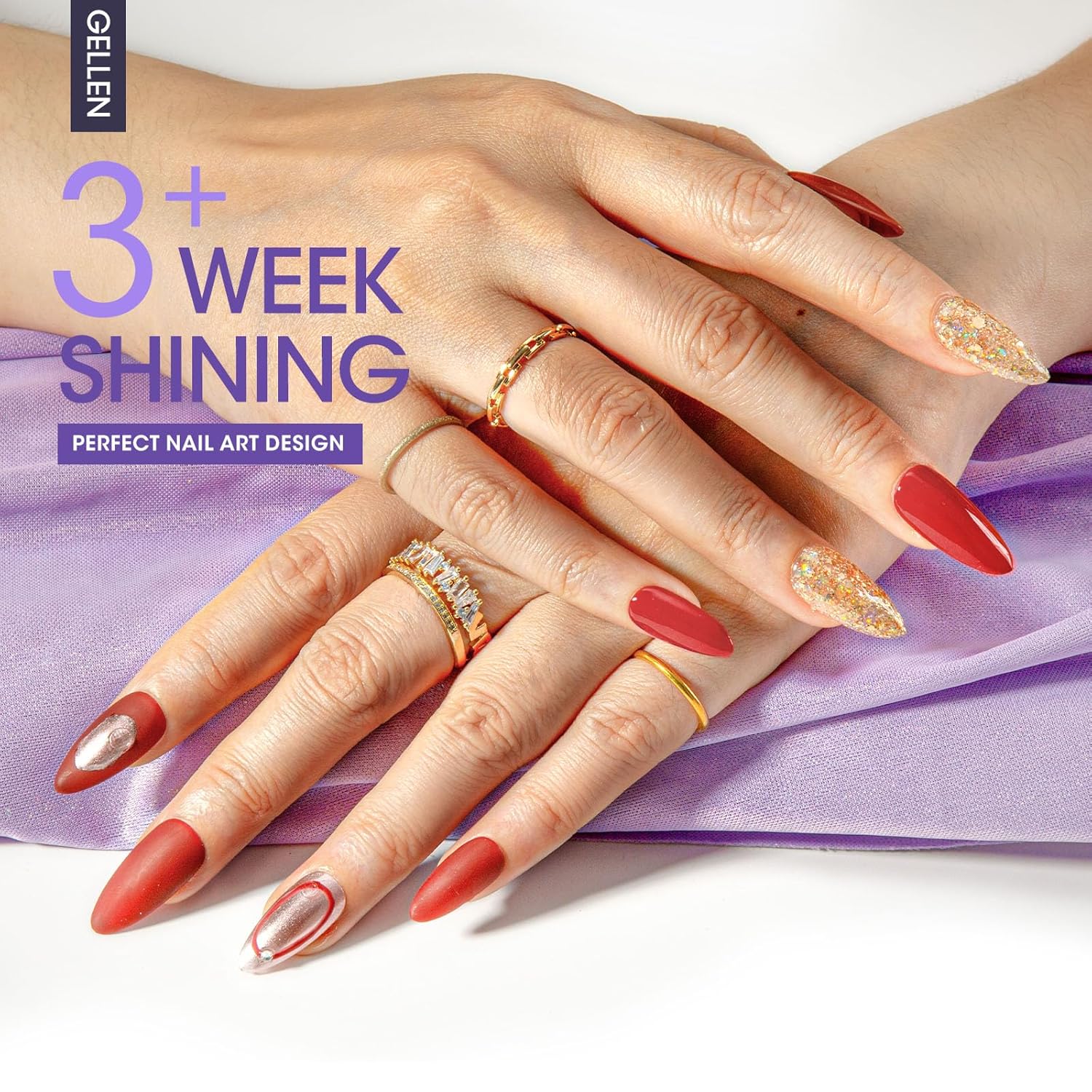 • 18ml Gel Base and Top Coat: Gellen Gel Top Coat Set contains 1*18ml base coat, 1*18ml glossy top coat, 1*18ml matte top coat. One set can meet your basic daily nail art designs
