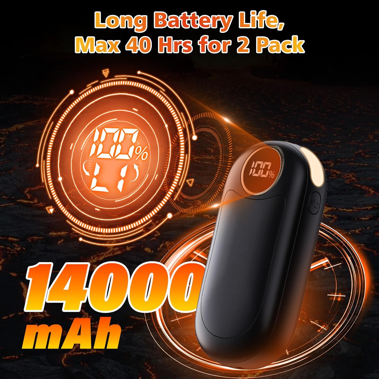 - 【Long Battery Life & Fast Charging】This rechargeable hand warmers total is 14000mAh (7000mAh * 2 Pack) . It can be fully charged in 3.5 hours and can provide up to 20 hours of continuous warmth! When you use single sided heating mode, it can be used up to 18 hours, and when you use double sided heating mode, it can be used up to 8 hours. These come with a Y-shaped charge cable allowing you to charge both using one charging port. Say goodbye to the hassle of frequent charging