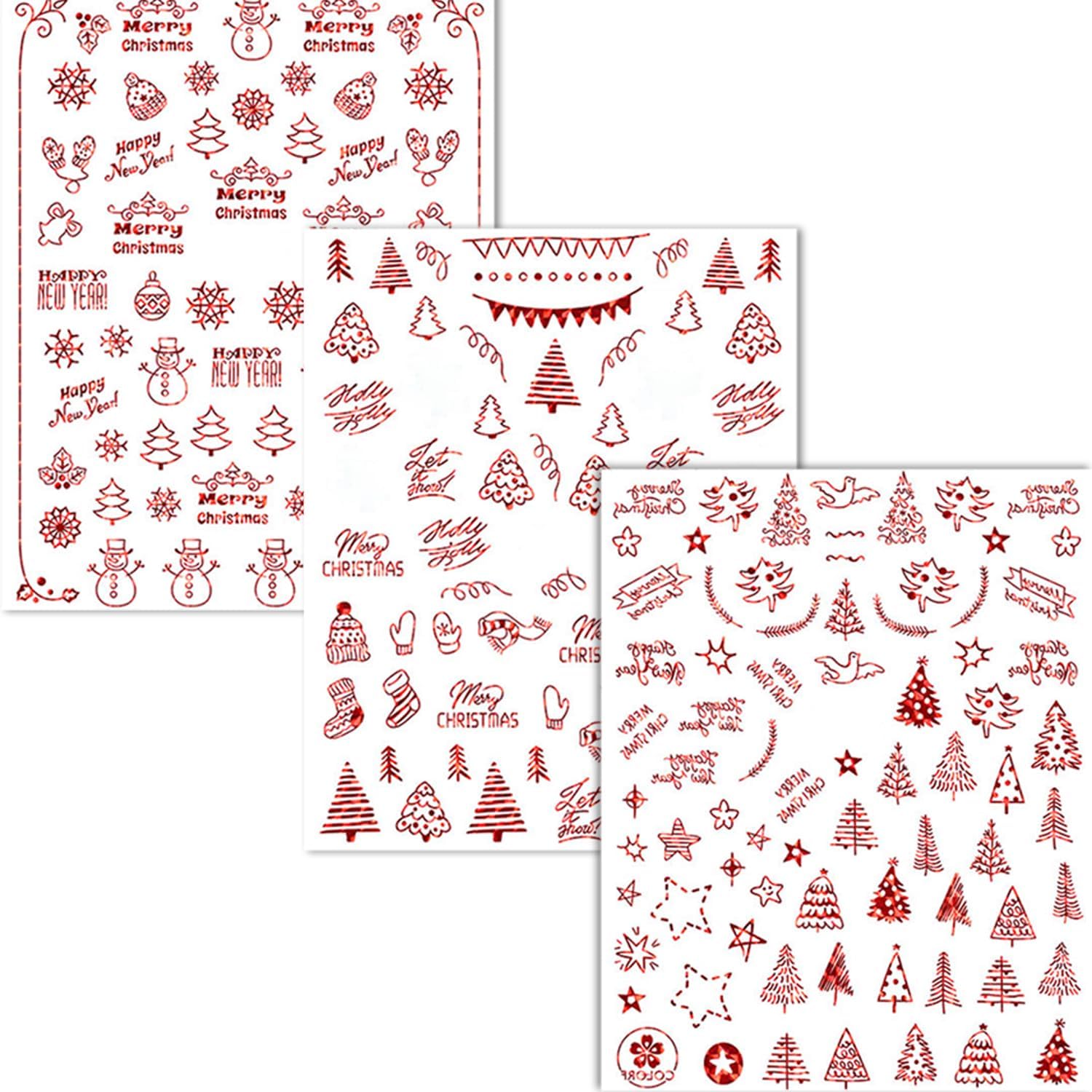 - Christmas Series: You will get 9 of sheets Red Xmas Snowflakes nail art stickers, it contains a variety of snowman, trees, snow, and butterfly and you can design bold and fashionable nail art.Which can offer you multiple choices .which can satisfy your rich imagination of nail DIY and create your own style.