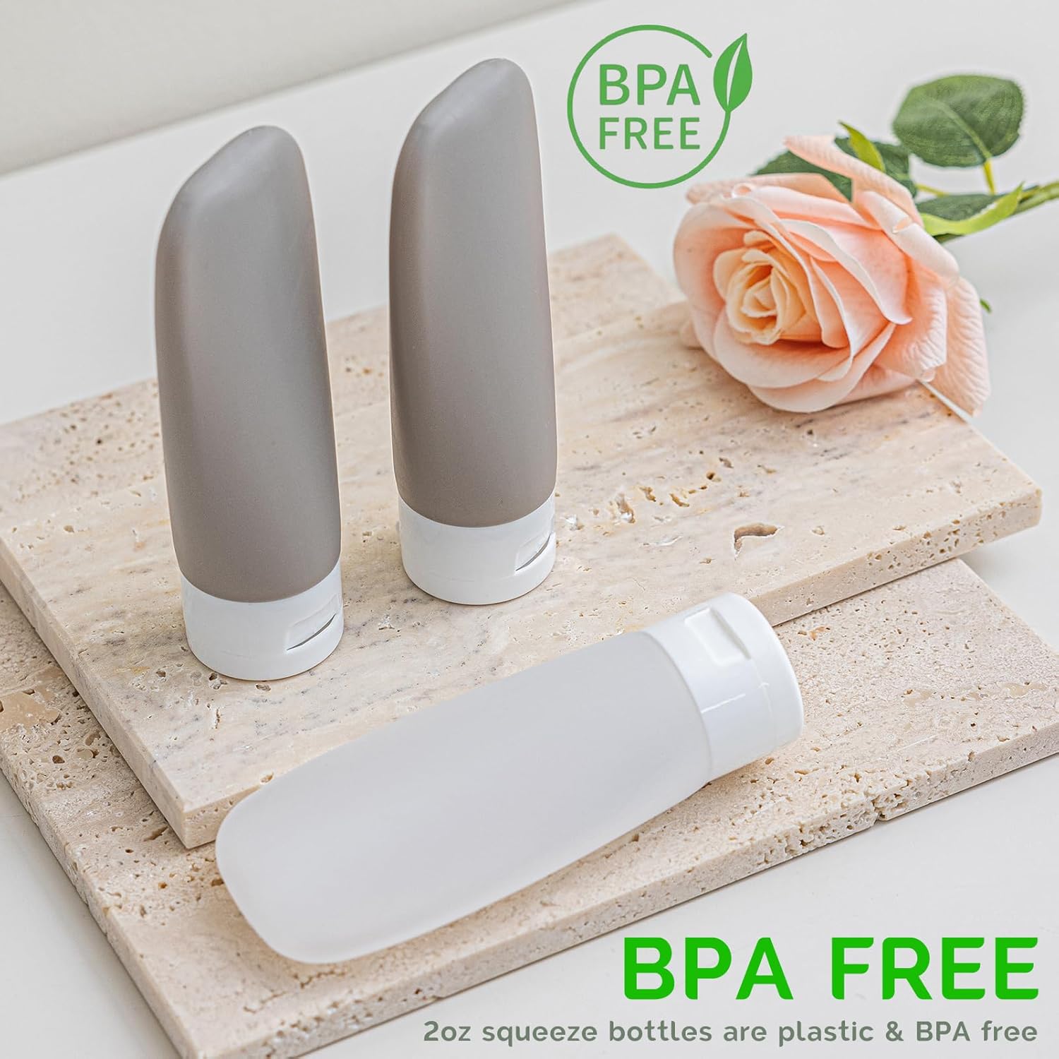 - Safe & Easy to Use: Our travel bottles are made of food grade BPA Free plastic, this travel set is sturdy, soft, squeezable, flexible and reusable. Safe material guarantee that you can use them to store shampoo, conditioner, face soap, sunscreen, creams, lotion or etc safely. Soft body make you squeeze out contents easily. Bigger bottlenecks are easier to fill and clean.