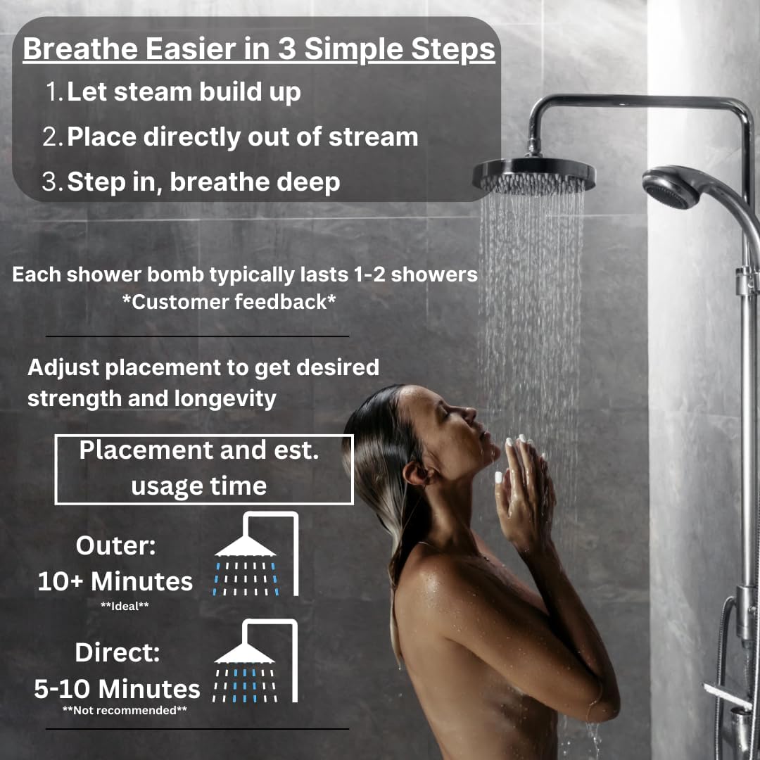 - ⏱️ LONG-LASTING POWER, FAST-ACTING IMPACT Designed with a slow-release technology that melts over time, so the scent lasts your entire shower. Strong enough to fill your bathroom with bold, cooling freshness. Most customers report utilizing each steamer for two showers.