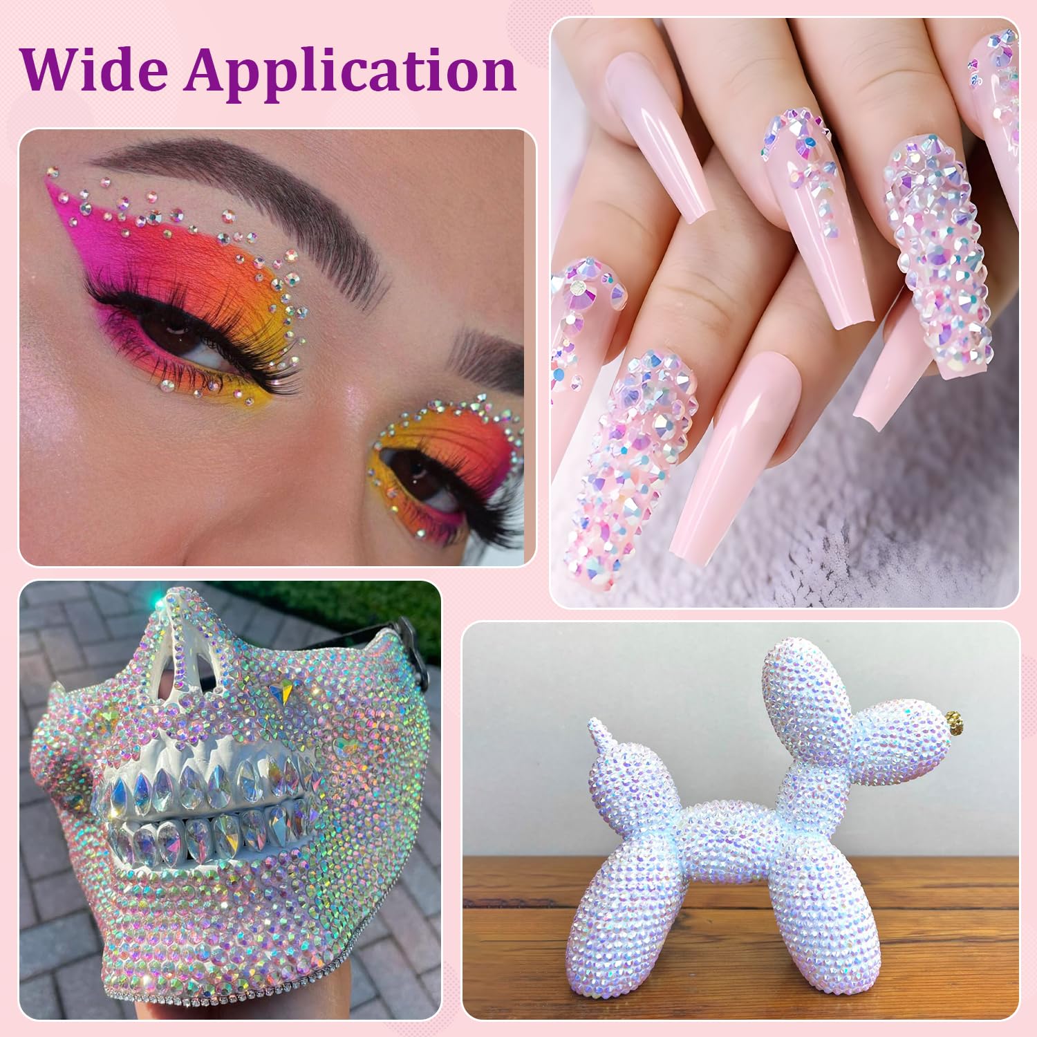 • WIDE APPLICATION -- These sparkling iridescent resin rhinestones are perfect for creating dazzling looks. Use them for bedazzling DIY crafts like shoes, tumblers, mugs, bottles, phone cases, popsockets, scrapbooks, photo frames, diamond paintings, greeting cards, bags, glasses, guitars, keychains, hats, masks, hair clips, bracelets, wristbands, clothing, clothes, wedding dresses, and more. Apply it to what you want to bling!