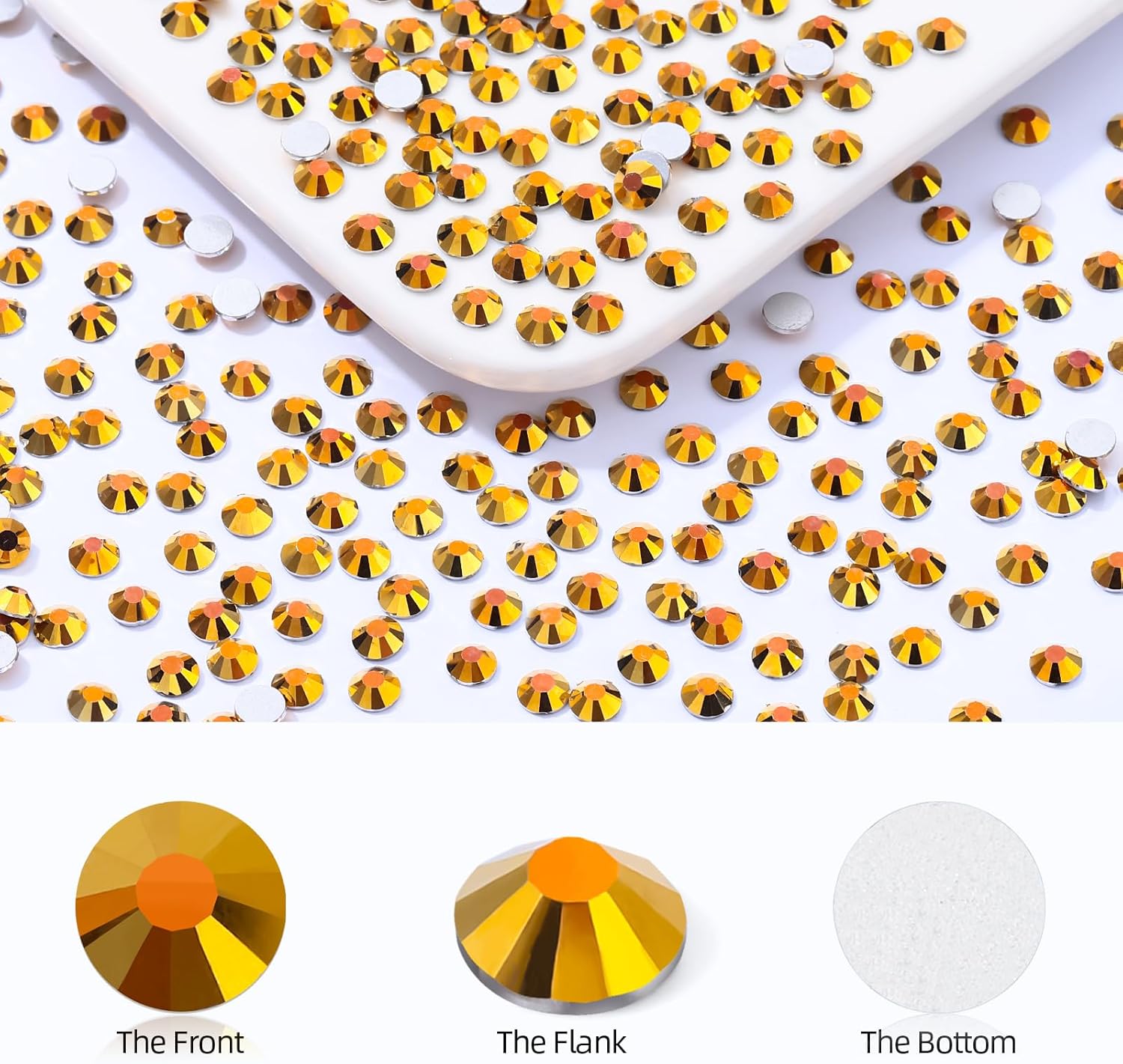 Gold Flatback Rhinestones, Glass Rhinestones for Nail Art and Craft, Glue Fix, Loose Crystal Gemstones(Gold, SS20, 1440pcs, 4.6-4.8mm)