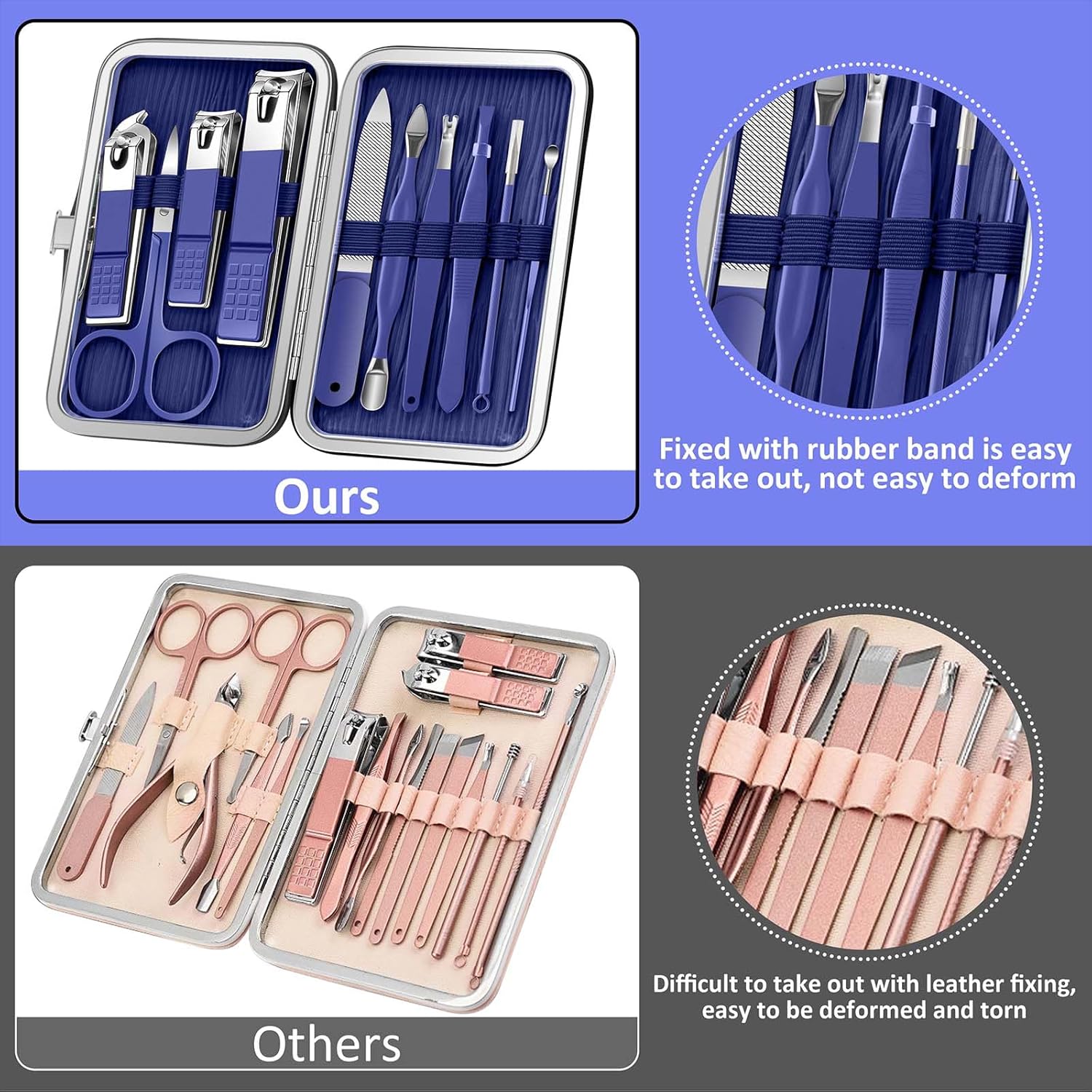 - Manicure Set for Women Men: The manicure pedicure set is available in five colors: black, blue, rose gold, green, gradient pink and purple. This leather manicure kit is the perfect gift for Valentineโs Day, Thanksgiving Day, Christmas Day, Birthday and important anniversary for family and friends.