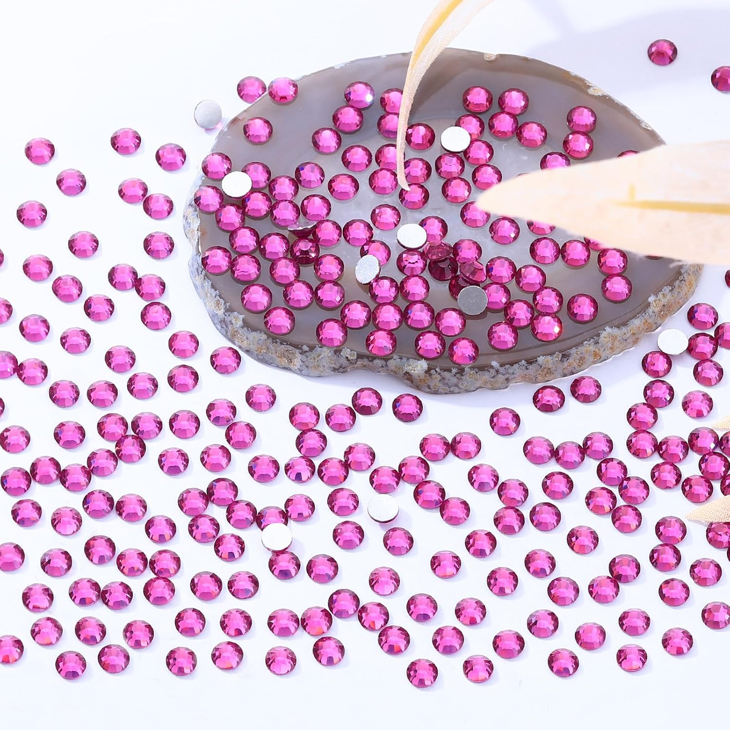 Fuchsia Flatback Rhinestones, Glass Rhinestones for Nail Art and Craft, Glue Fix, Loose Crystal Gemstones(Fuchsia, SS12, 2880pcs, 2.9-3.0mm)