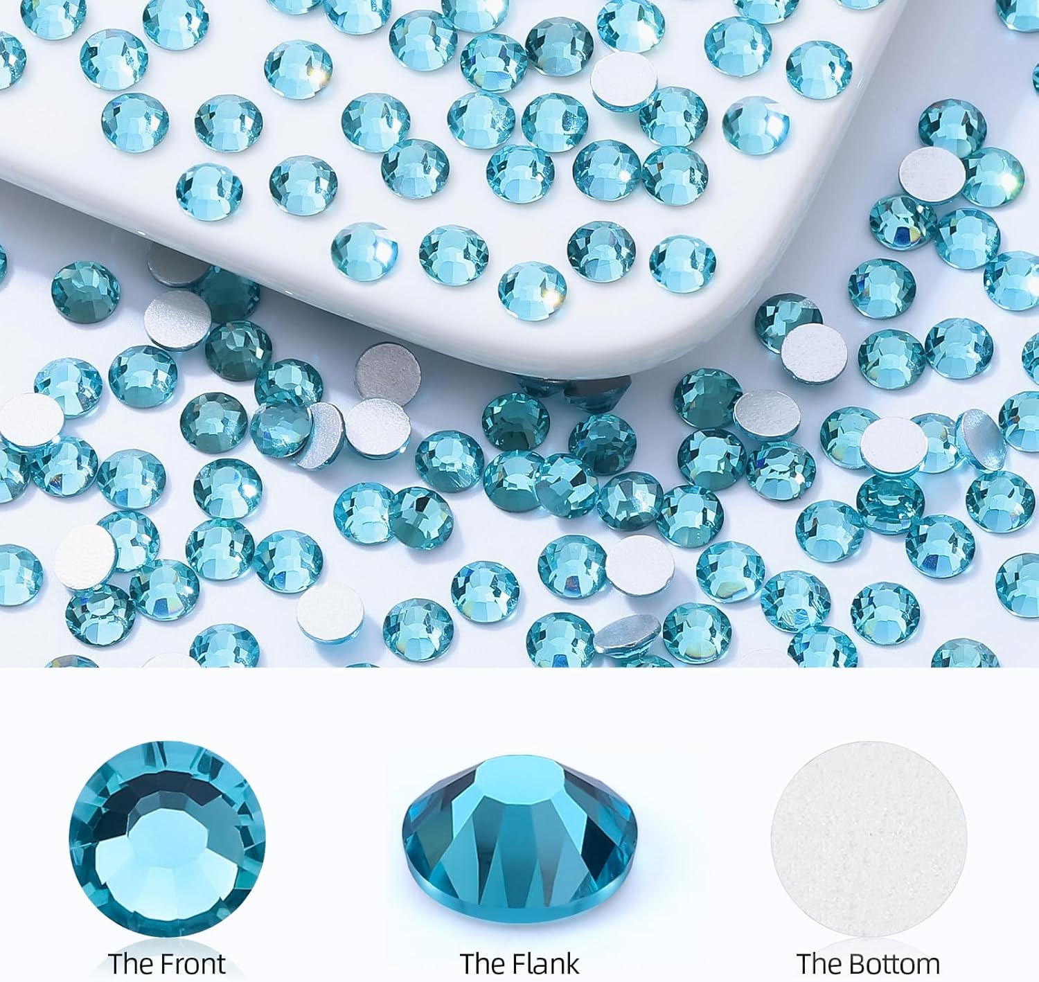 - Product Packaging: Bags packaging SS10 2.7~2.8 MM - 2880 Pcs aquamarine flatback rhinestones.