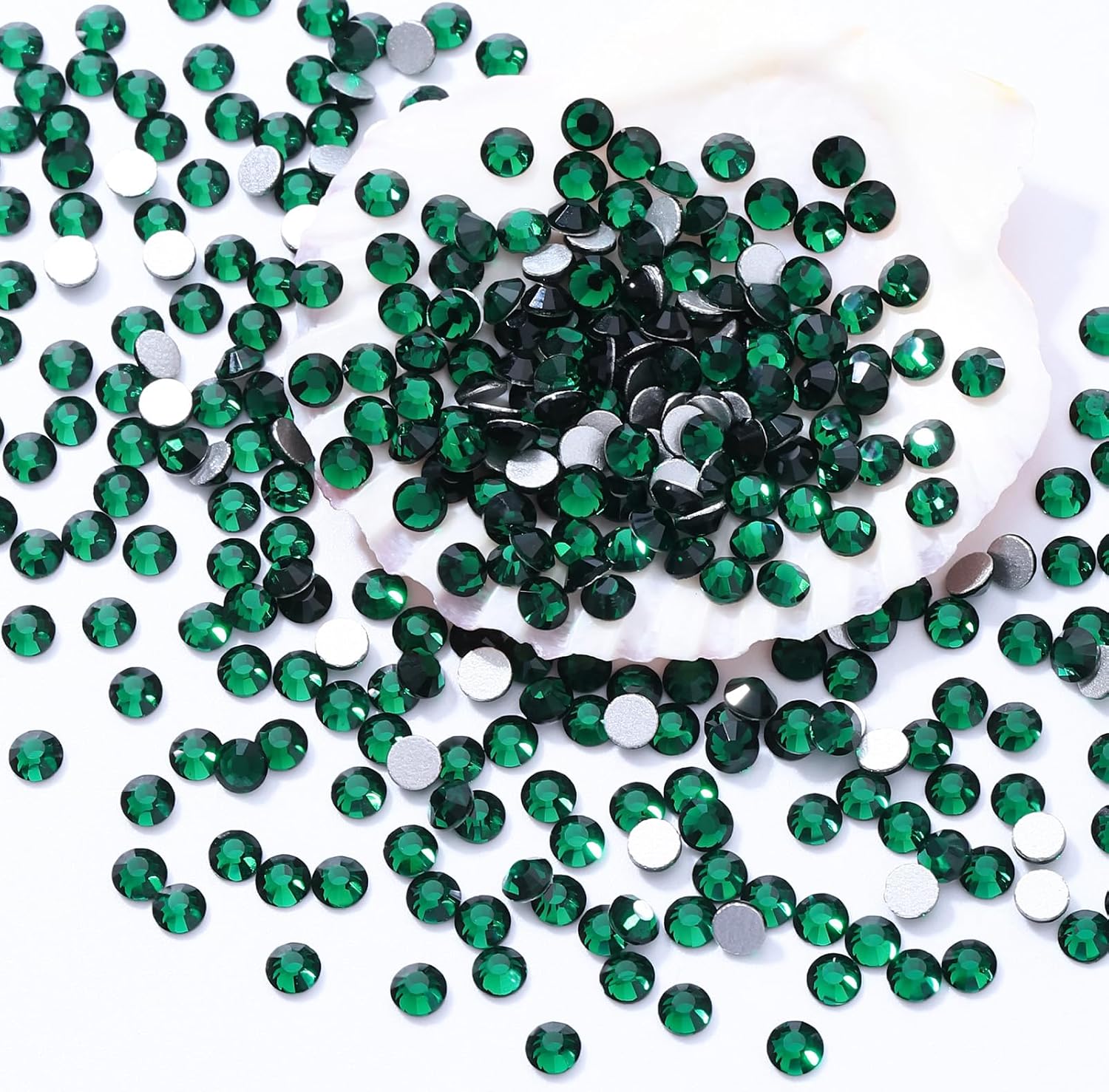 Green Flatback Rhinestones, Glass Rhinestones for Nail Art and Craft, Glue Fix, Loose Crystal Gemstones(Green, SS12, 2880pcs, 2.9-3.0mm)