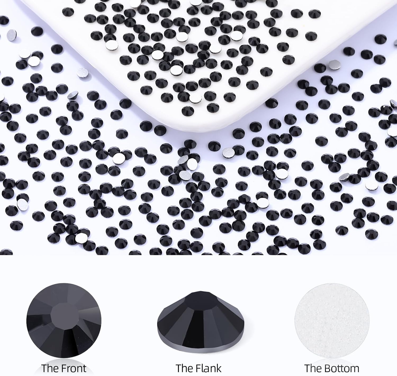 Black Flatback Rhinestones, Glass Rhinestones for Nail Art and Craft, Glue Fix, Loose Crystal Gemstones(Black, SS8, 2880pcs, 2.3-2.5mm)