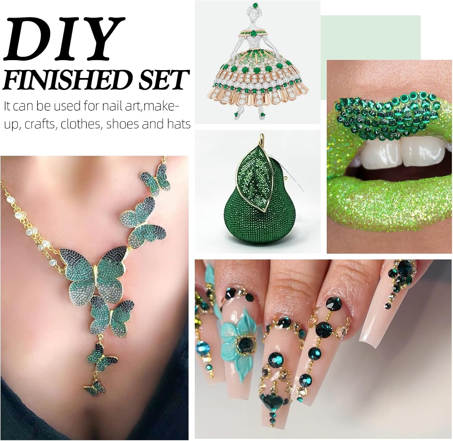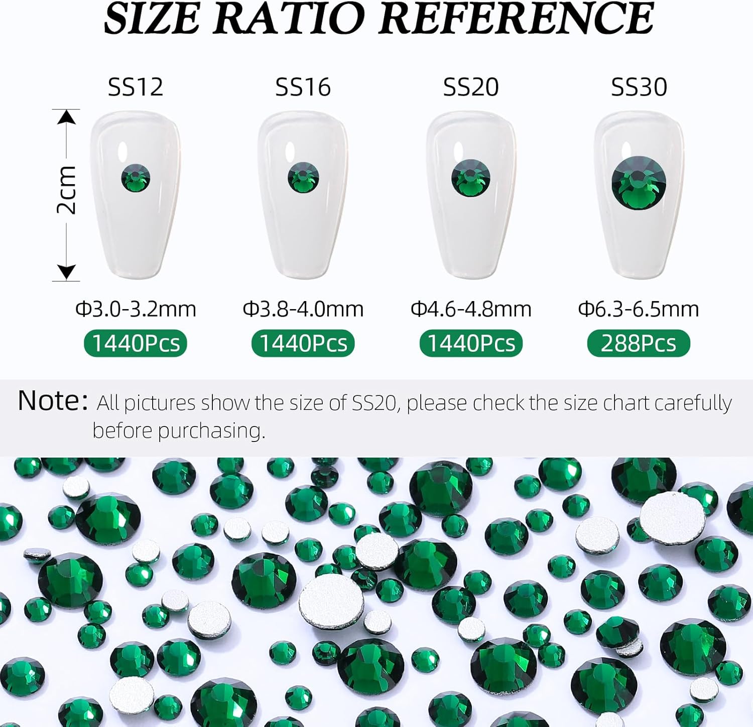 Green Flatback Rhinestones, Glass Rhinestones for Nail Art and Craft, Glue Fix, Loose Crystal Gemstones(Green, SS20, 2880pcs, 4.6-4.8mm)