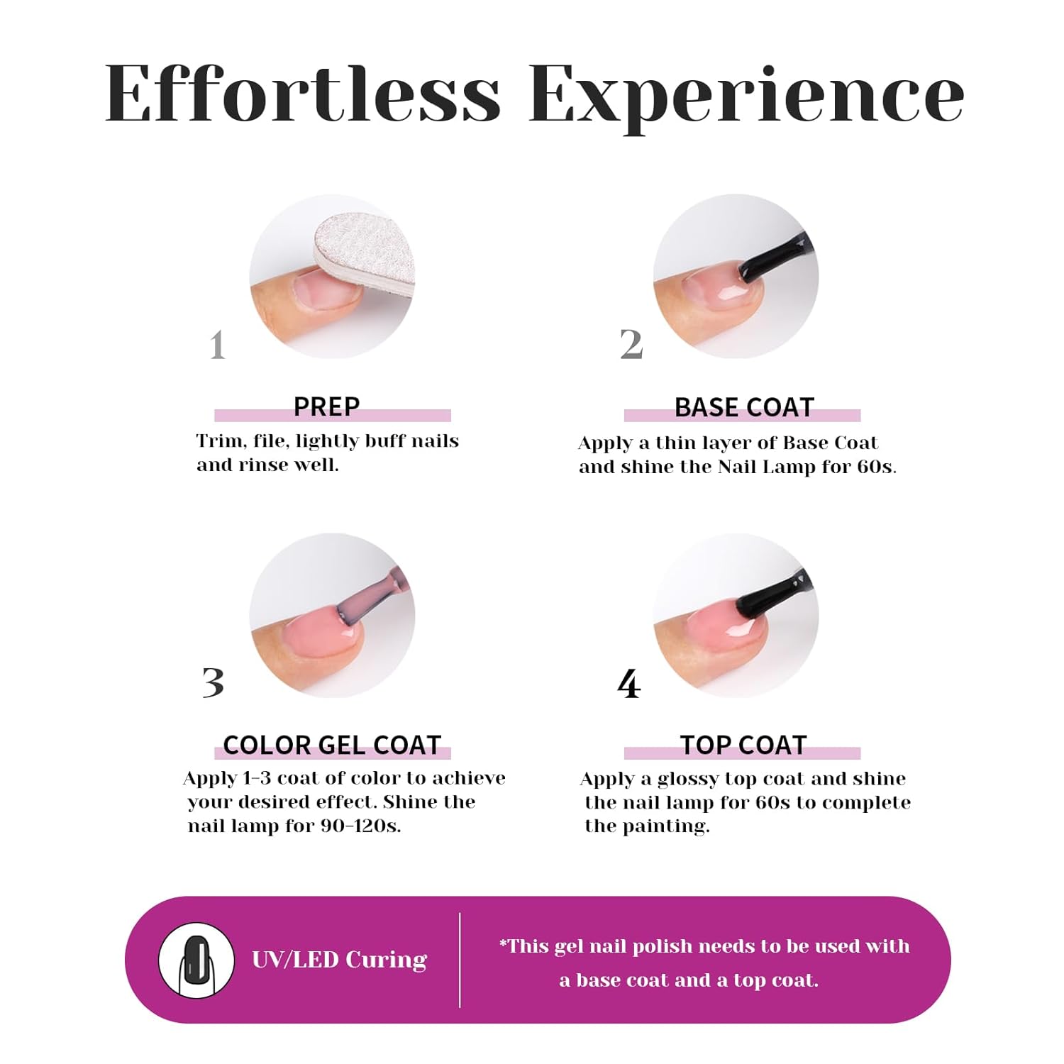 - Quick curing with UV lamp: To achieve the best results, this gel nail polish requires a UV lamp for curing. The UV light helps to speed up the drying process, ensuring a glossy and chip-resistant finish.