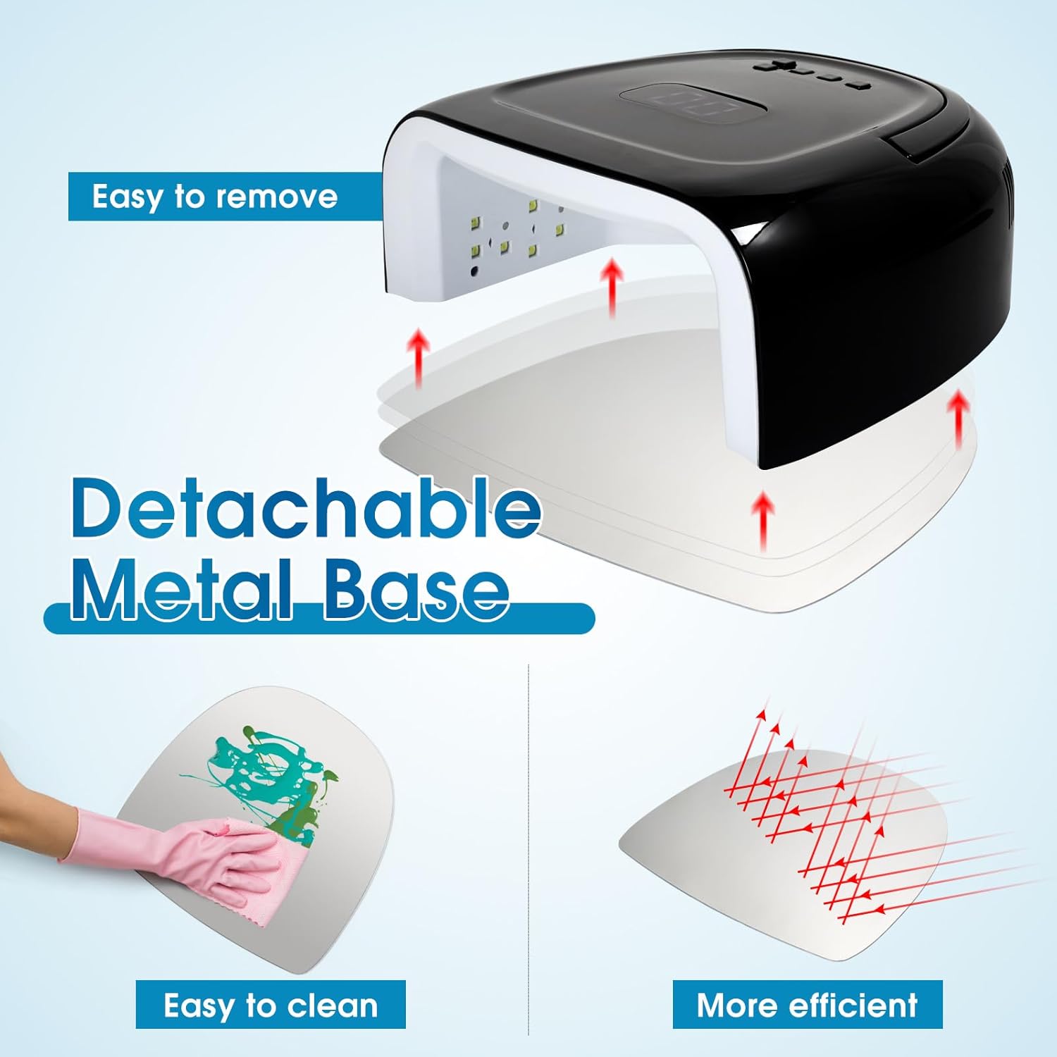 • [Detachable Base & Spacious Space] The uv lamp has a detachable base that makes it easy to remove and clean, and spacious space for curing fingernails and toenails at the same time, no need to worry about bumping sides or messing up the polish.